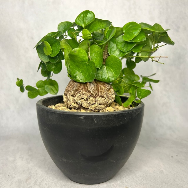 亀の甲羅のようなゴツゴツした塊根部と ハート型の葉っぱが可愛く 人気の冬型を代表する塊根植物 「亀甲竜(きっこうりゅう)」 大きくなると塊根の上部が土中から出てきてひび割れを起こし、カメの甲羅のように見えることが和名の由来です。 塊根部のひび割れ方にも個体差があり、突起がより大きくバランスが取れたものが評価され、好まれています。 冬型なので、9月上旬から5月中旬が成長期です。 夏の終わり頃からつるを伸ばして葉を展開し 冬と春を過ごした後、梅雨前につるや葉が枯れ 塊根のみとなり休眠に入ります。 [日当たり・置き場所] 日当たりと風通しのよい場所で管理します。 ただし、塊根部は直射日光に長時間当てると風化し表面が傷んでしまうので、葉にはしっかり日を当てる一方、塊根部は遮光気味にします。 また、冬は冷たい風にさらされると葉を落としてしまうので注意します。 夏の休眠期はできるだけ涼しい環境に置きましょう。 [水やり] 成長期は、土がしっかり乾いたらたっぷりと水やりします。葉を落としている間は断水しましょう。 ★他サイトでも販売をしている為、急遽売り切れになる事もございますので気に入った商品がございましたらお早めにご購入をオススメいたします。 ★出品していない商品も沢山ございますので お探しの物などあればご用意できる可能性もありますので、お気軽にコメントをお寄せください!