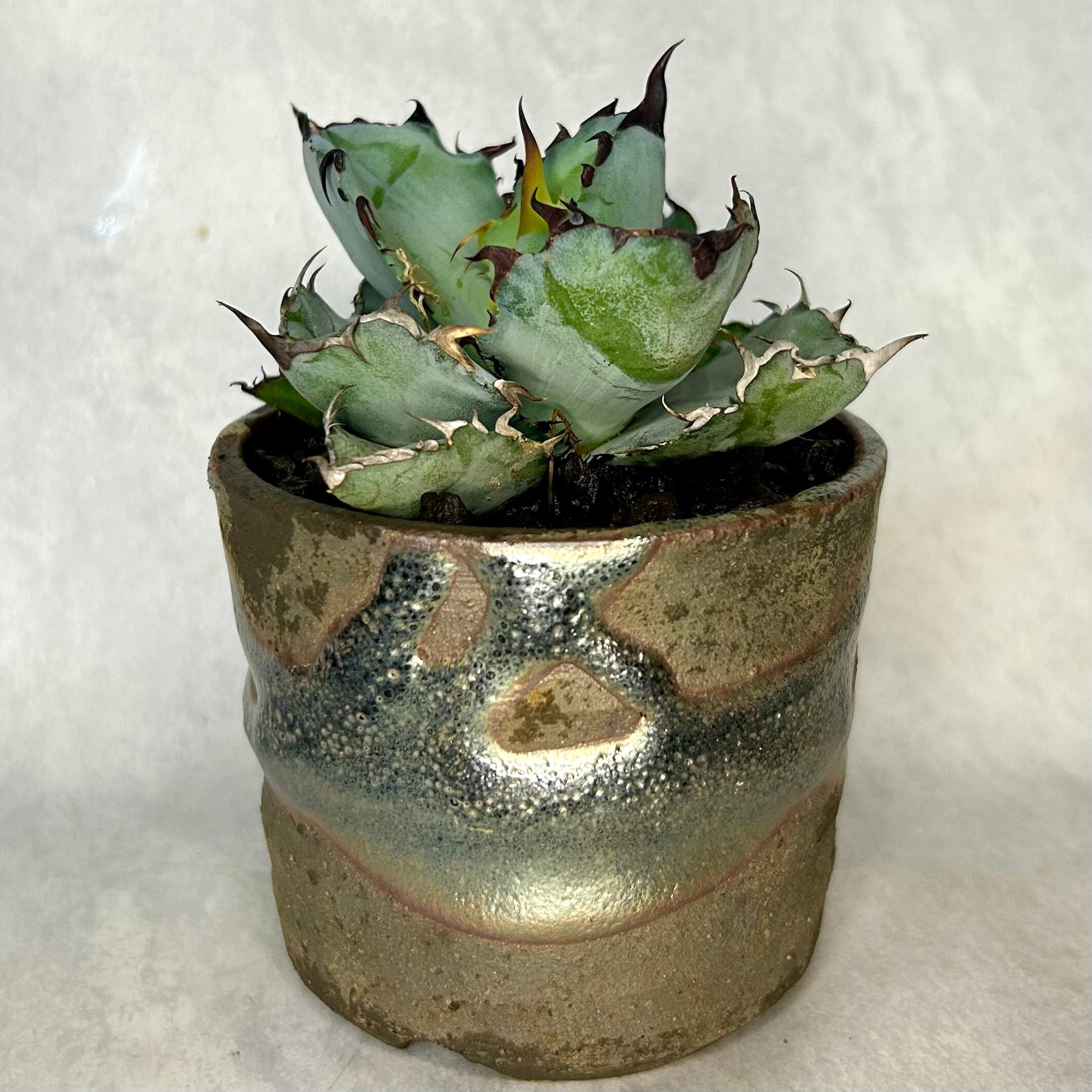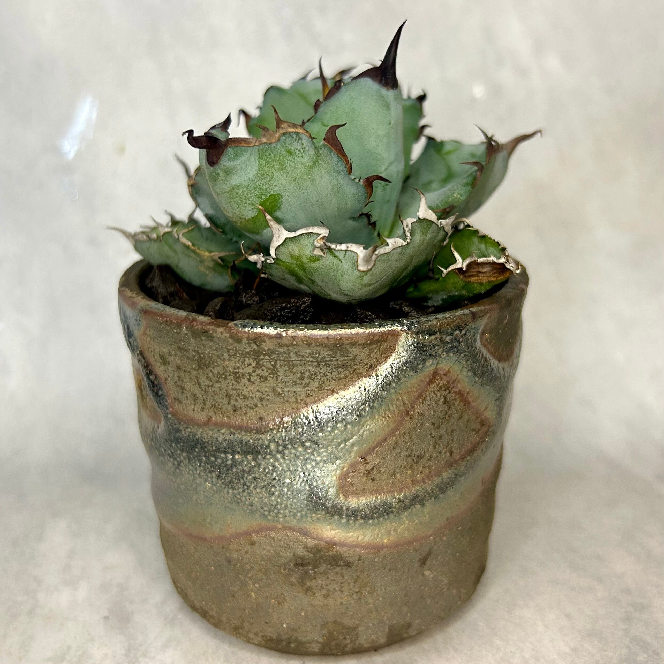 アガベ チタノタ[ブラック&ブルー]3号鉢入り(信楽焼)
