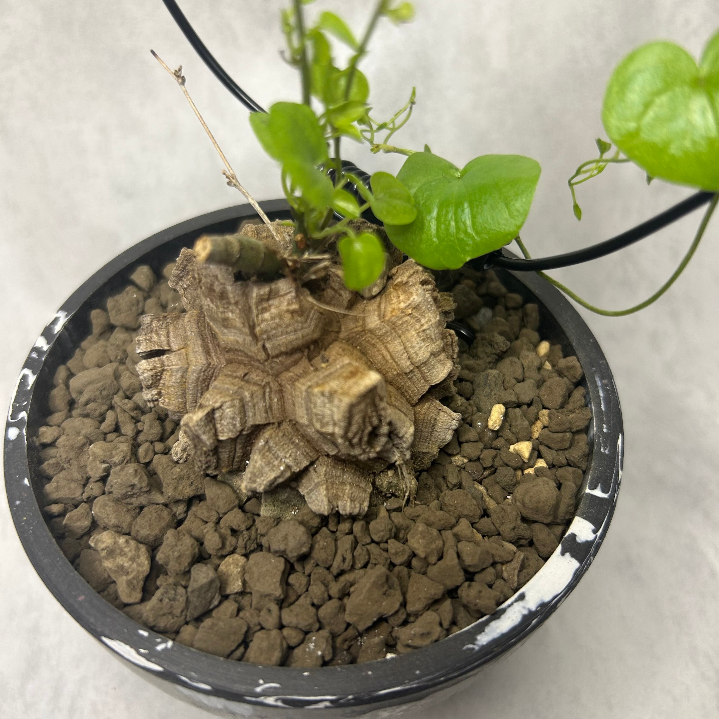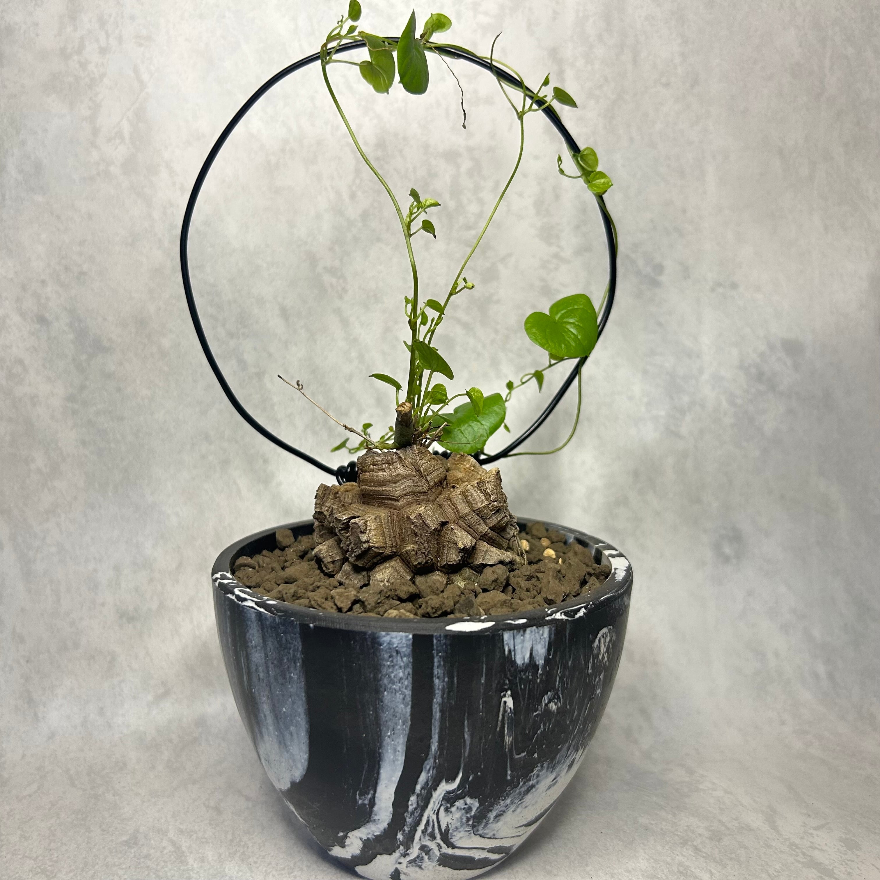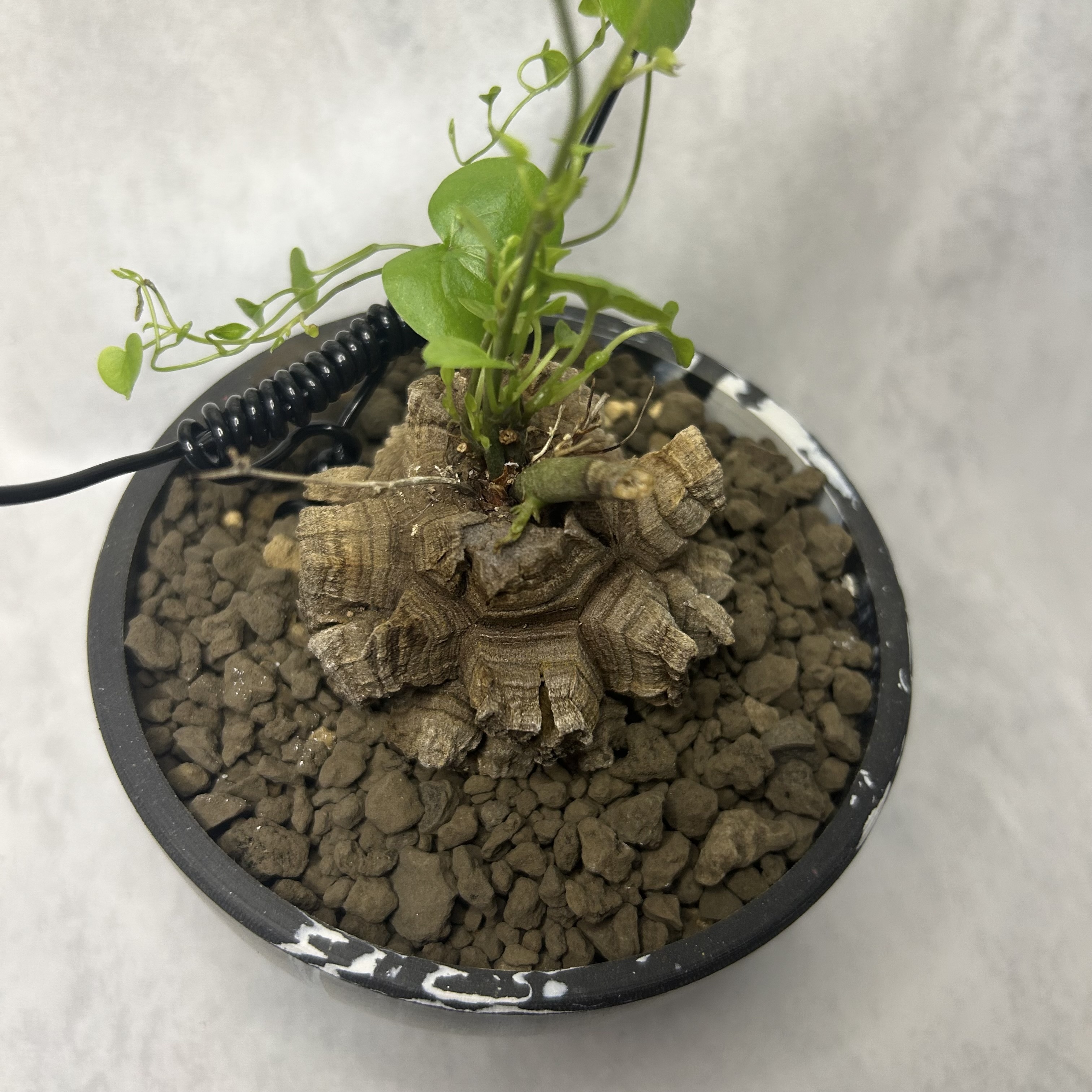 ただし、塊根部は直射日光に長時間当てると風化し表面が傷んでしまうので、葉にはしっかり日を当てる一方、塊根部は遮光気味にします。