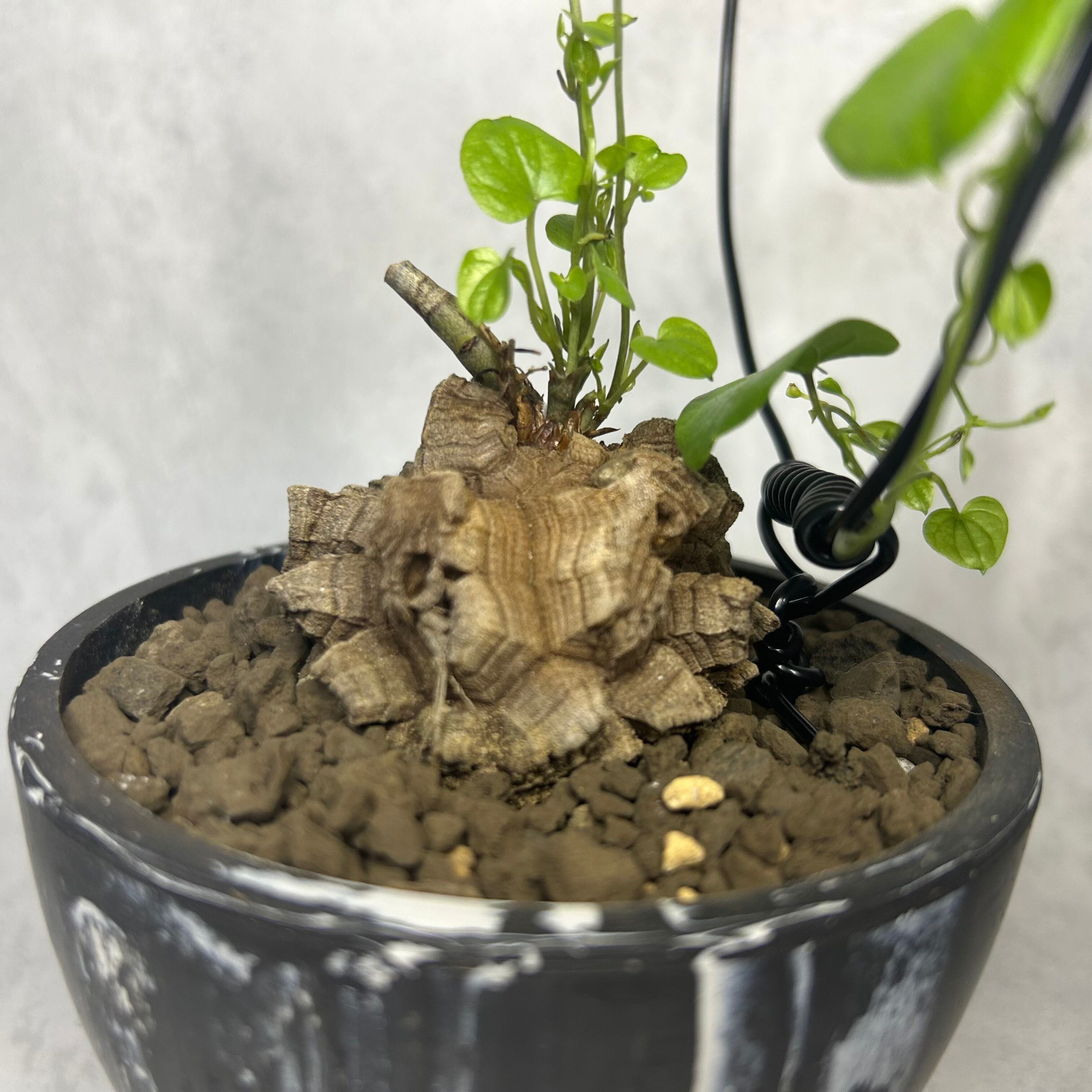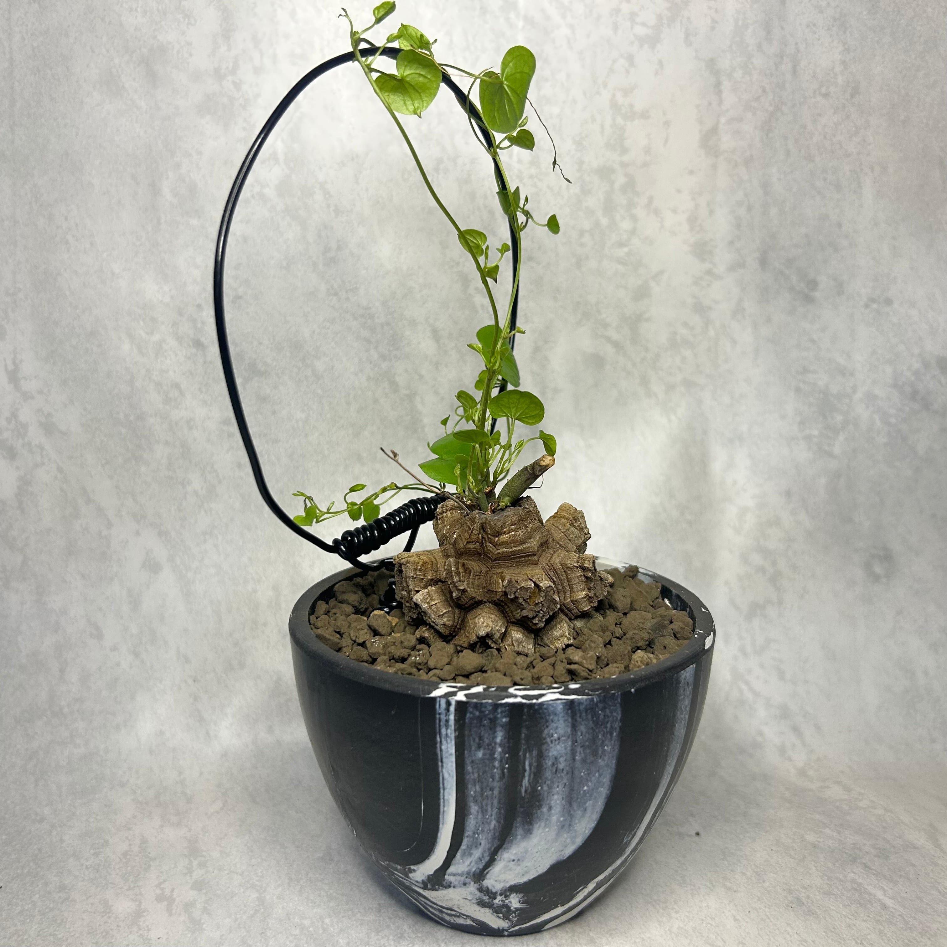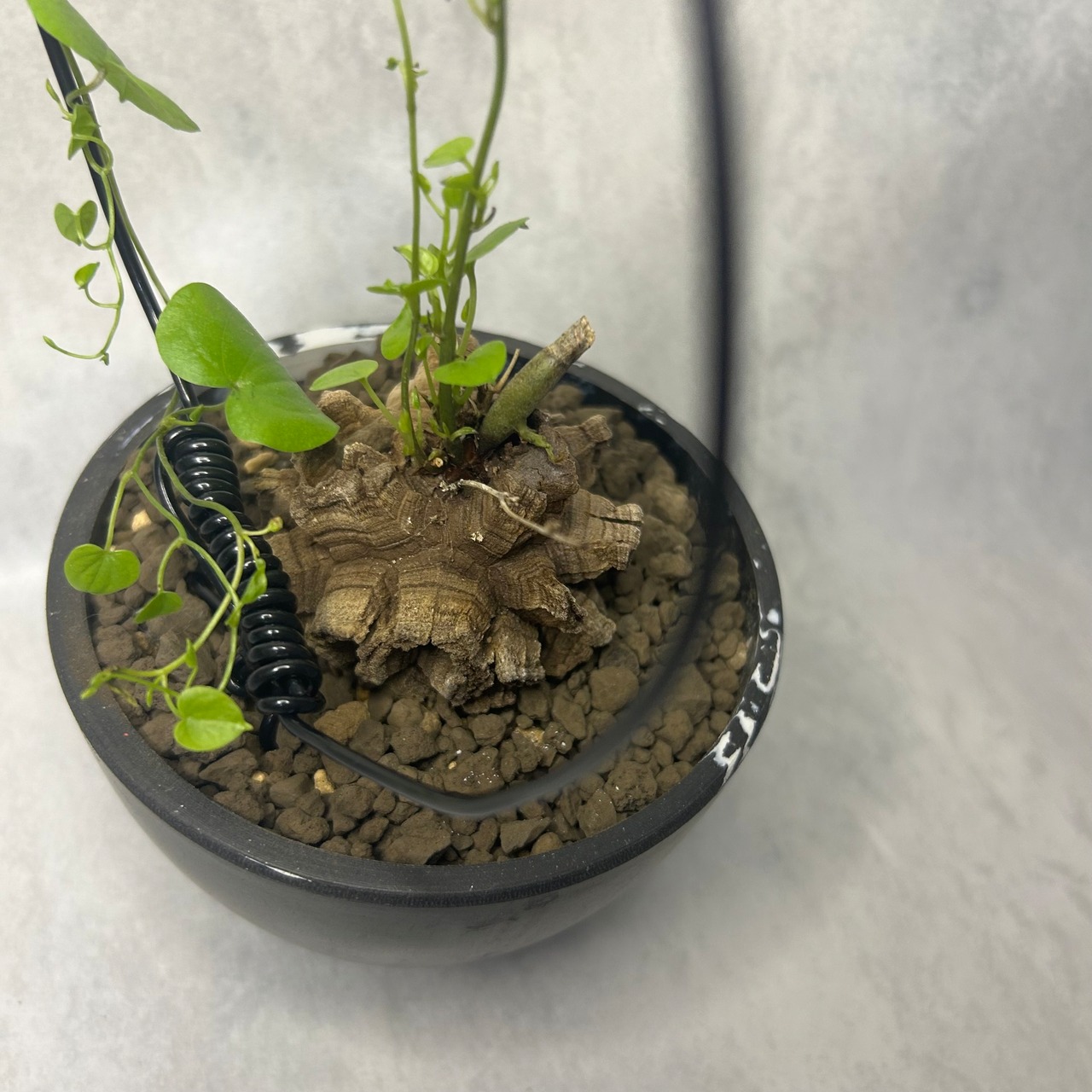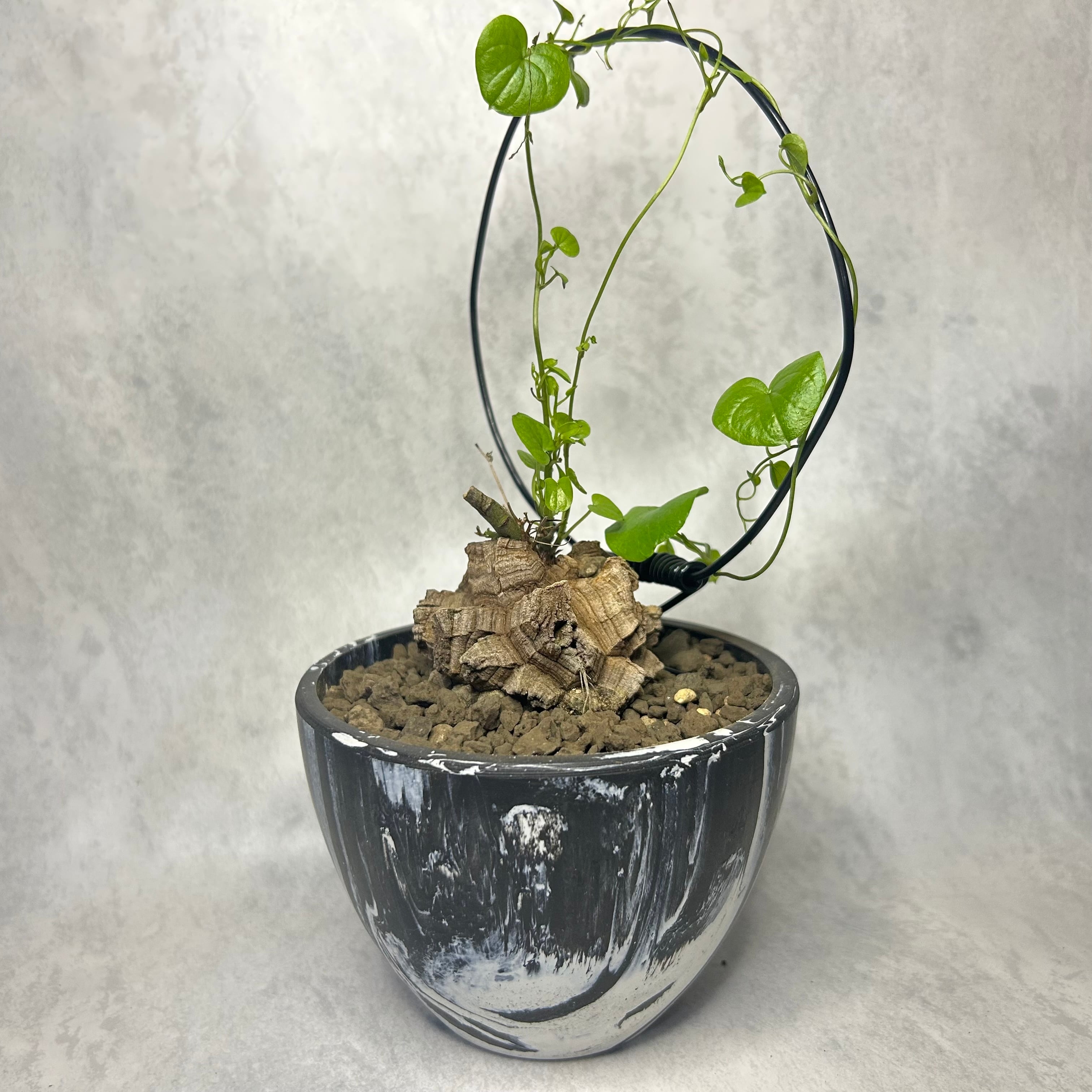 ただし、塊根部は直射日光に長時間当てると風化し表面が傷んでしまうので、葉にはしっかり日を当てる一方、塊根部は遮光気味にします。
