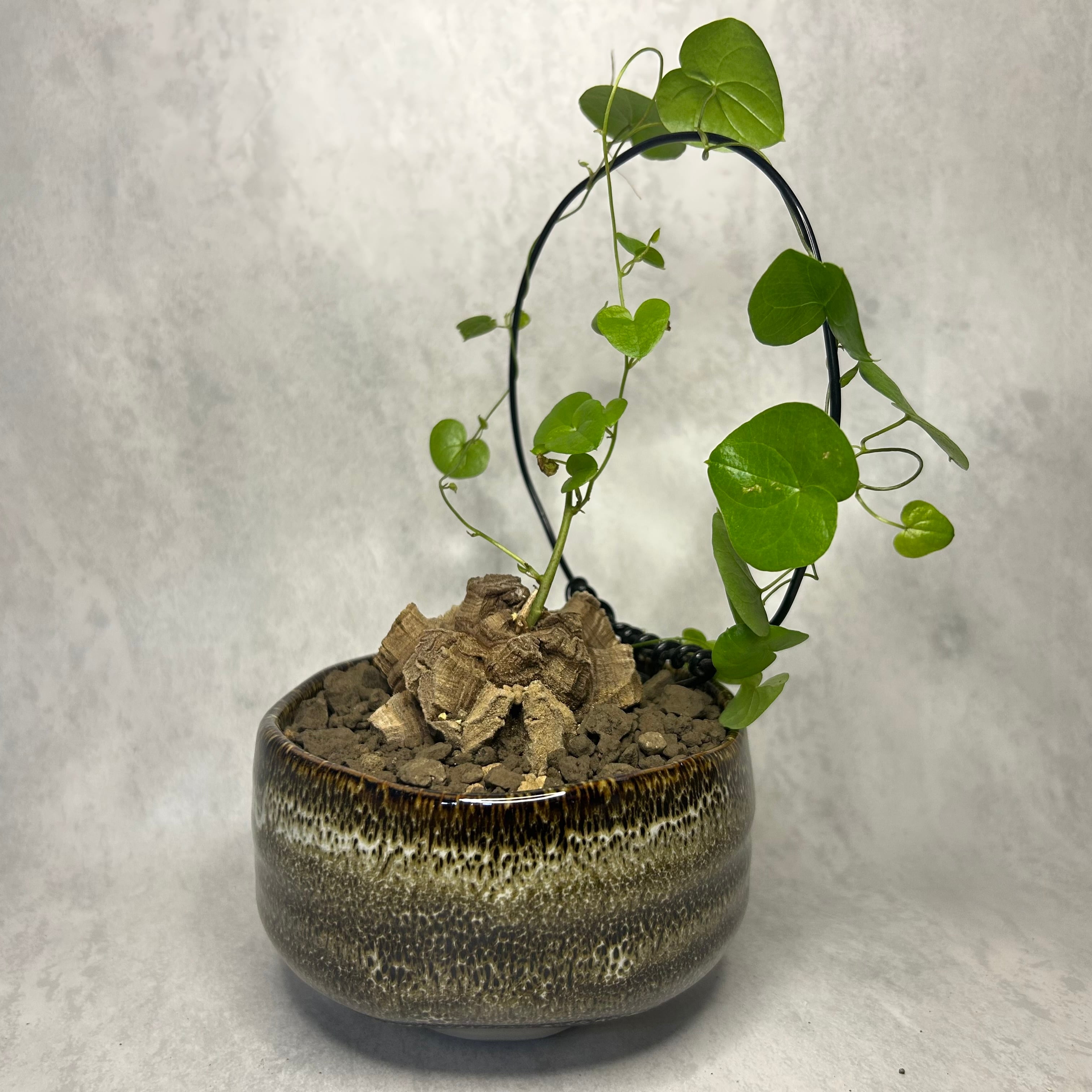ただし、塊根部は直射日光に長時間当てると風化し表面が傷んでしまうので、葉にはしっかり日を当てる一方、塊根部は遮光気味にします。