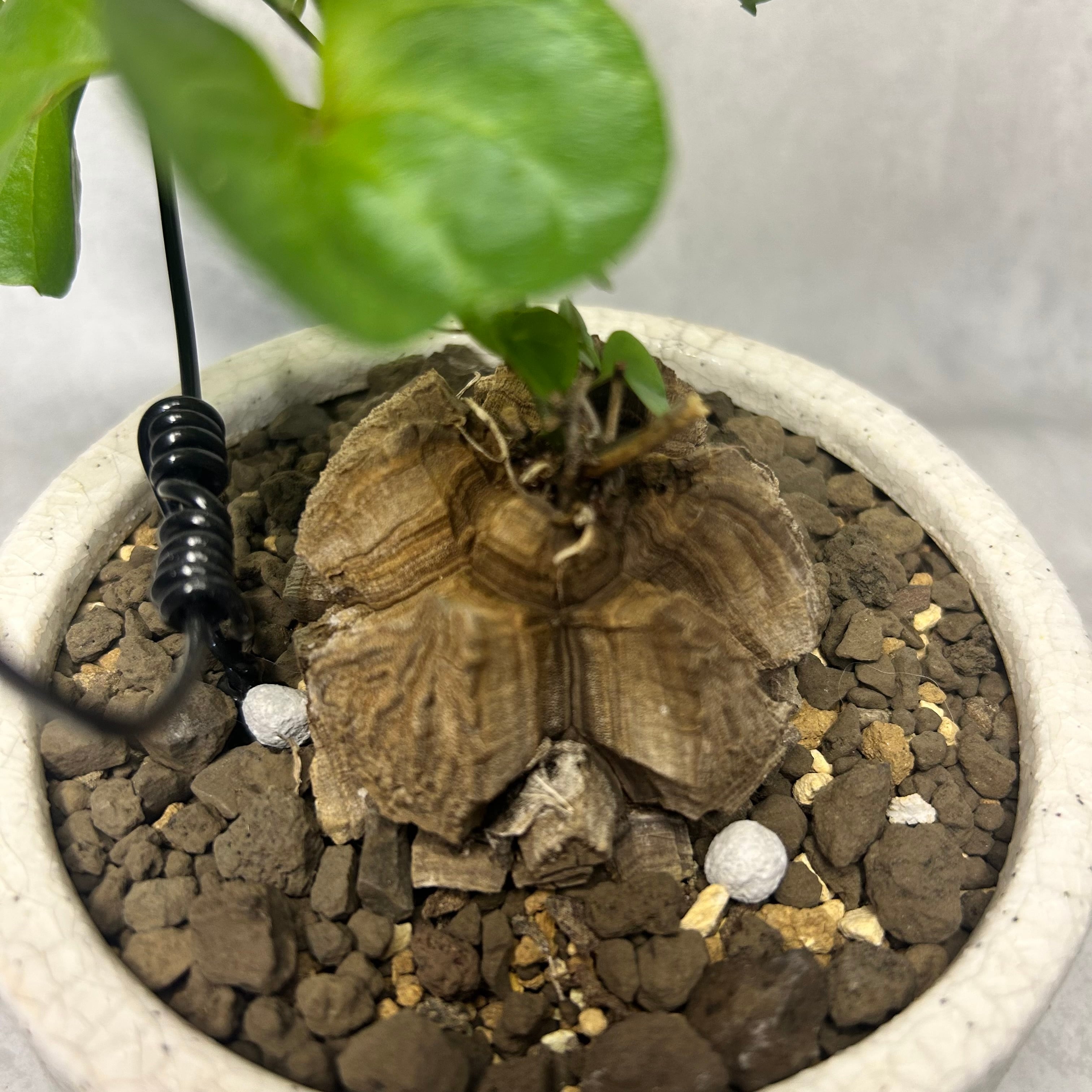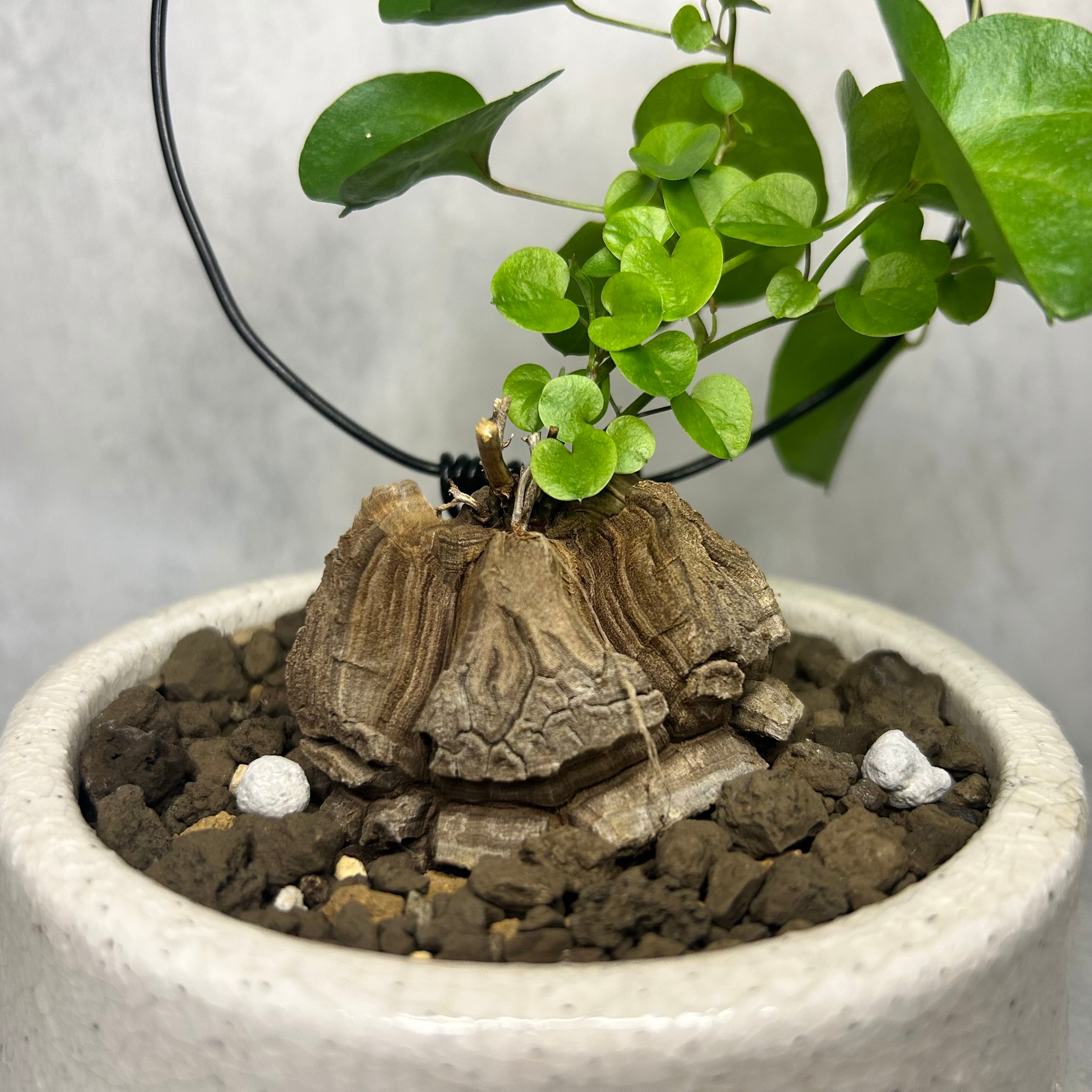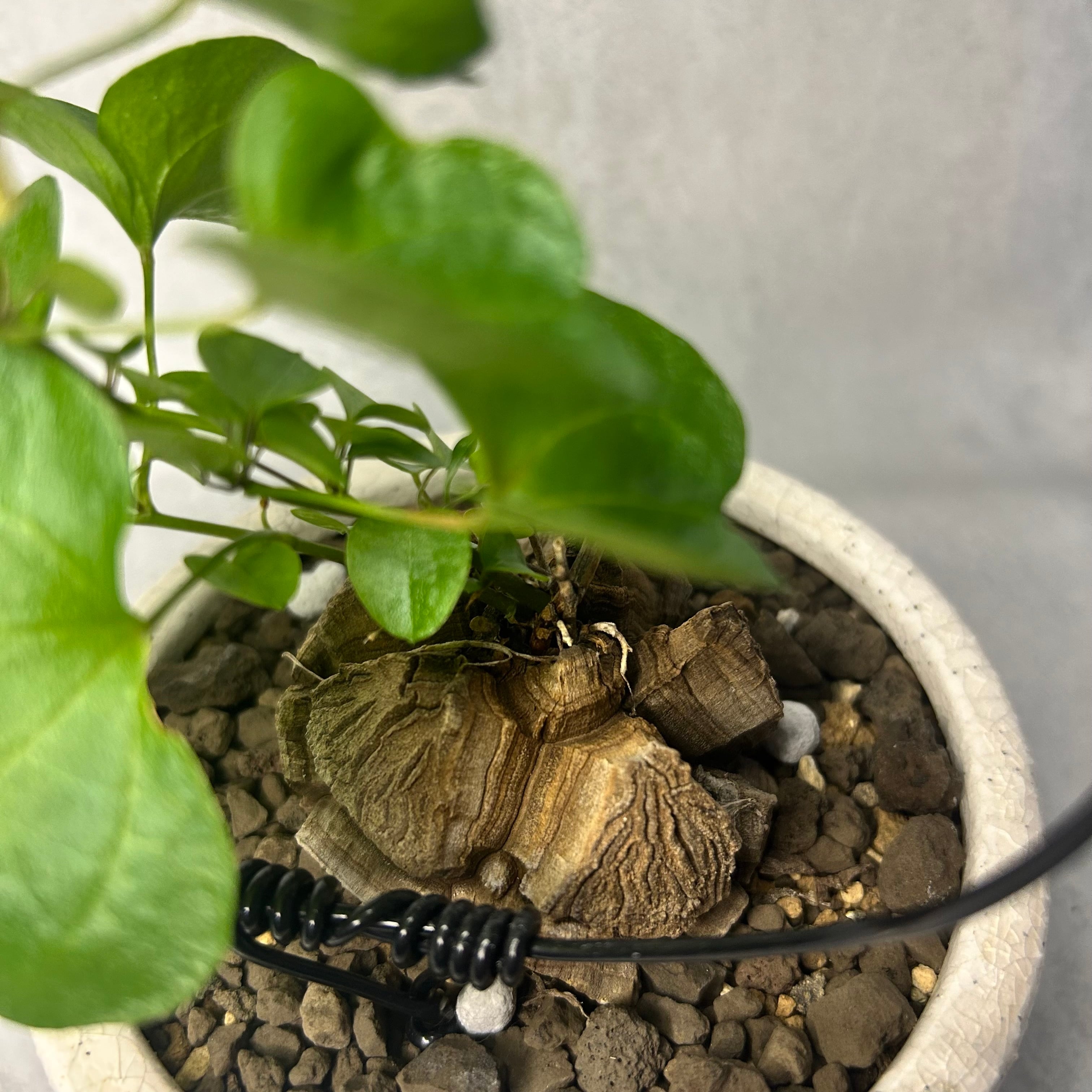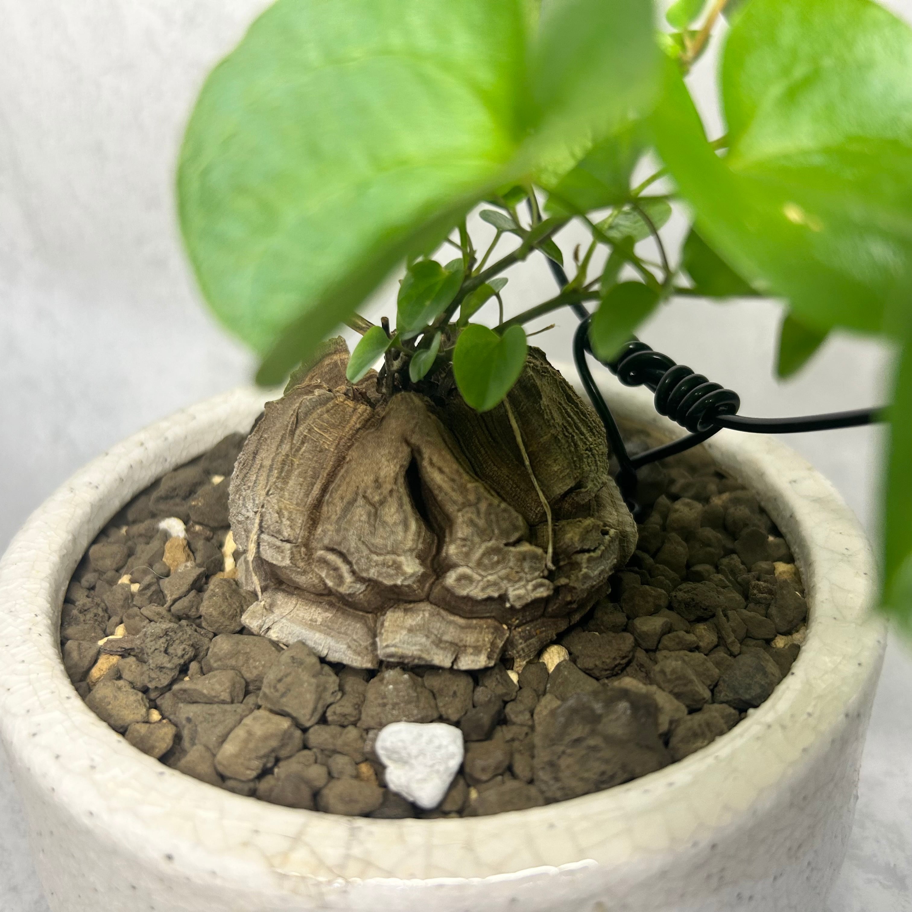 ただし、塊根部は直射日光に長時間当てると風化し表面が傷んでしまうので、葉にはしっかり日を当てる一方、塊根部は遮光気味にします。
