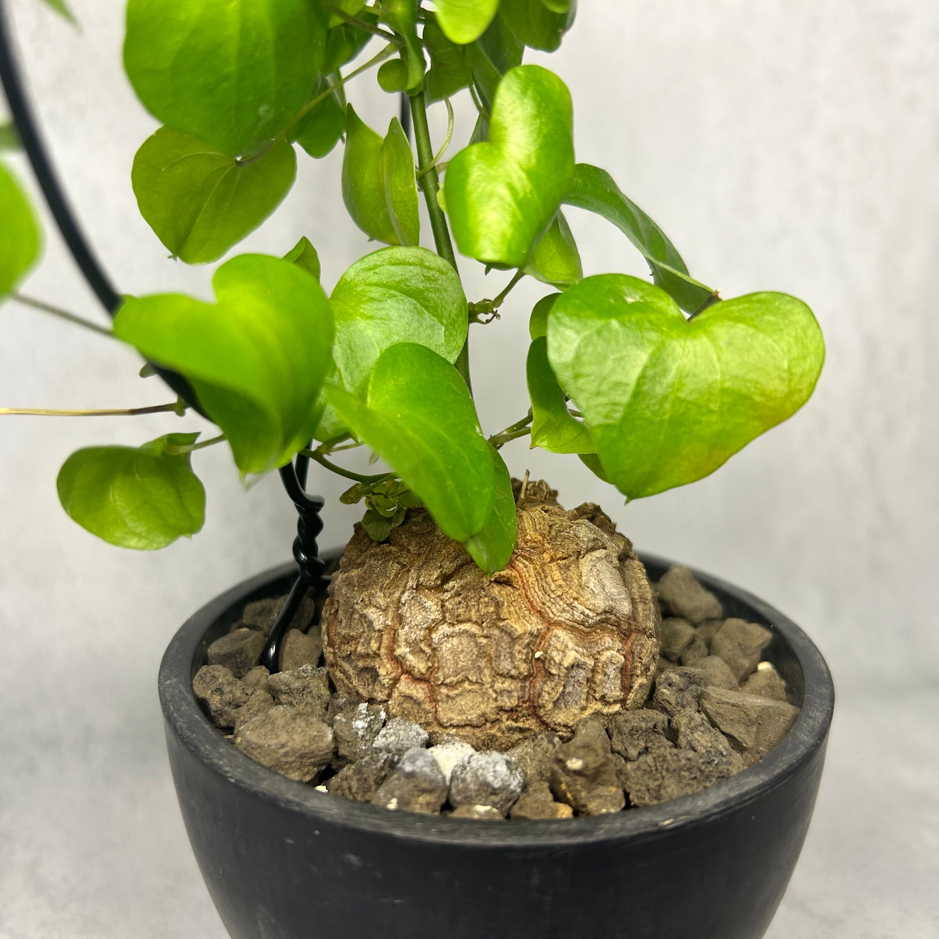 ただし、塊根部は直射日光に長時間当てると風化し表面が傷んでしまうので、葉にはしっかり日を当てる一方、塊根部は遮光気味にします。
