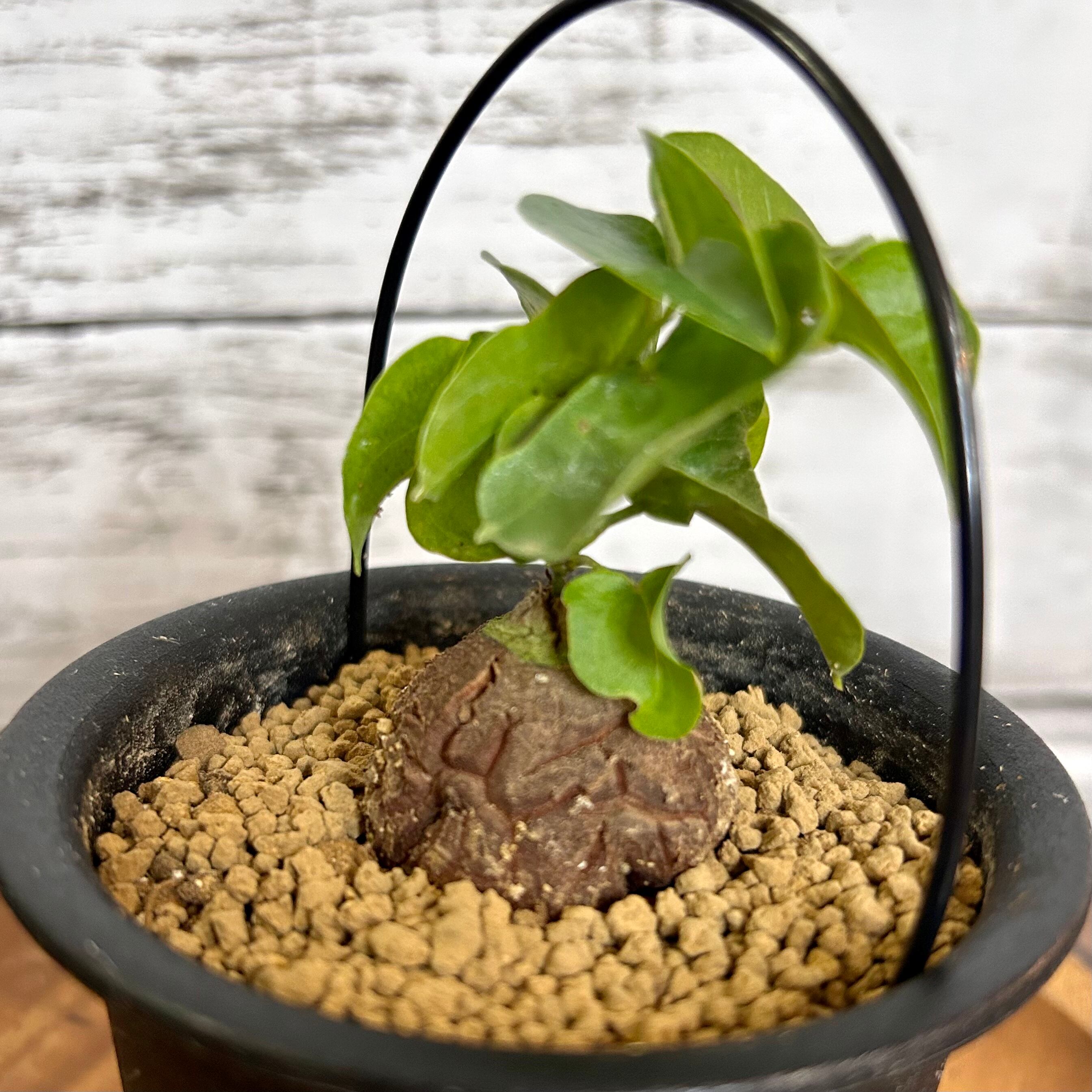 ただし、塊根部は直射日光に長時間当てると風化し表面が傷んでしまうので、葉にはしっかり日を当てる一方、塊根部は遮光気味にします。