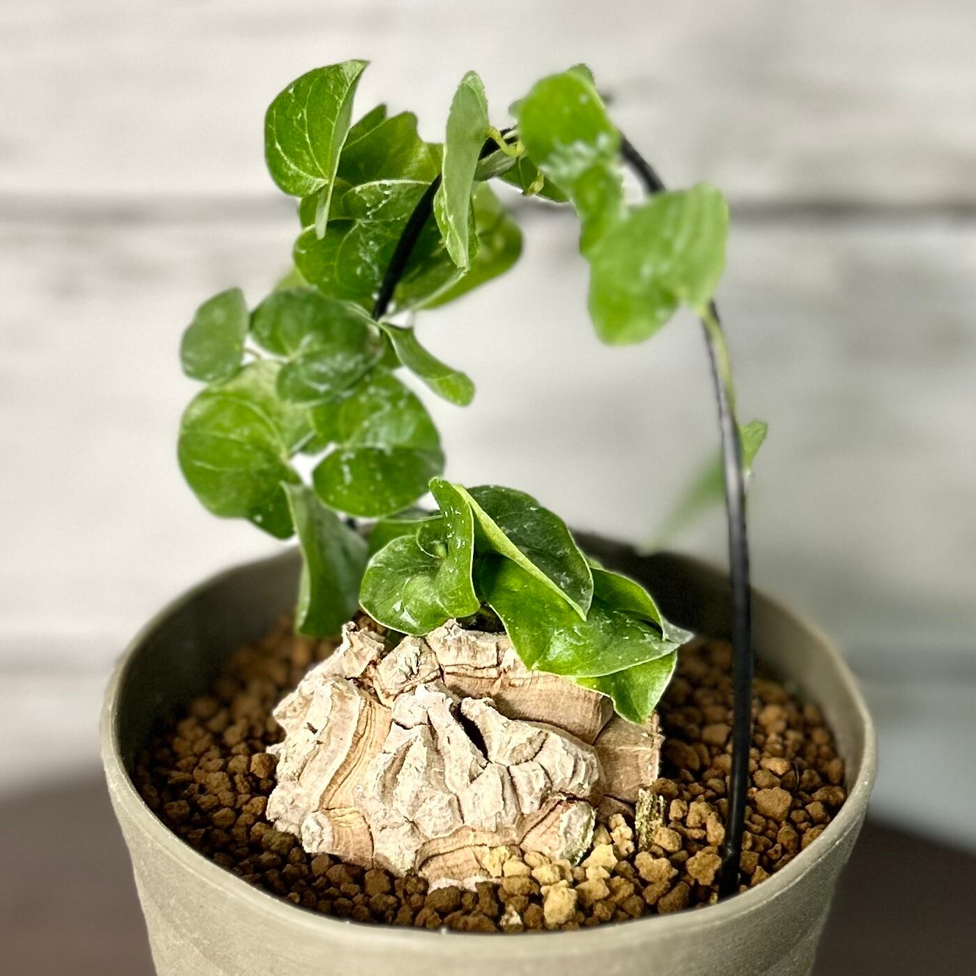 ただし、塊根部は直射日光に長時間当てると風化し表面が傷んでしまうので、葉にはしっかり日を当てる一方、塊根部は遮光気味にします。
