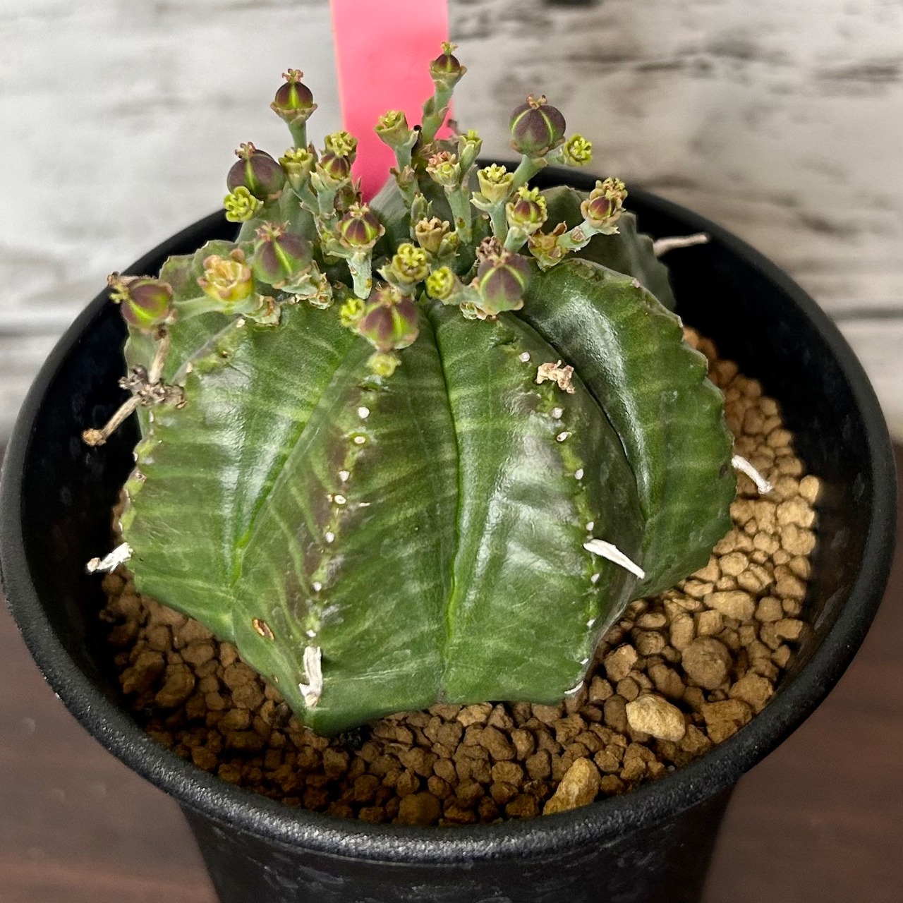 メロンのようにむっちりとした球状の株姿が特徴的なユーフォルビアです。