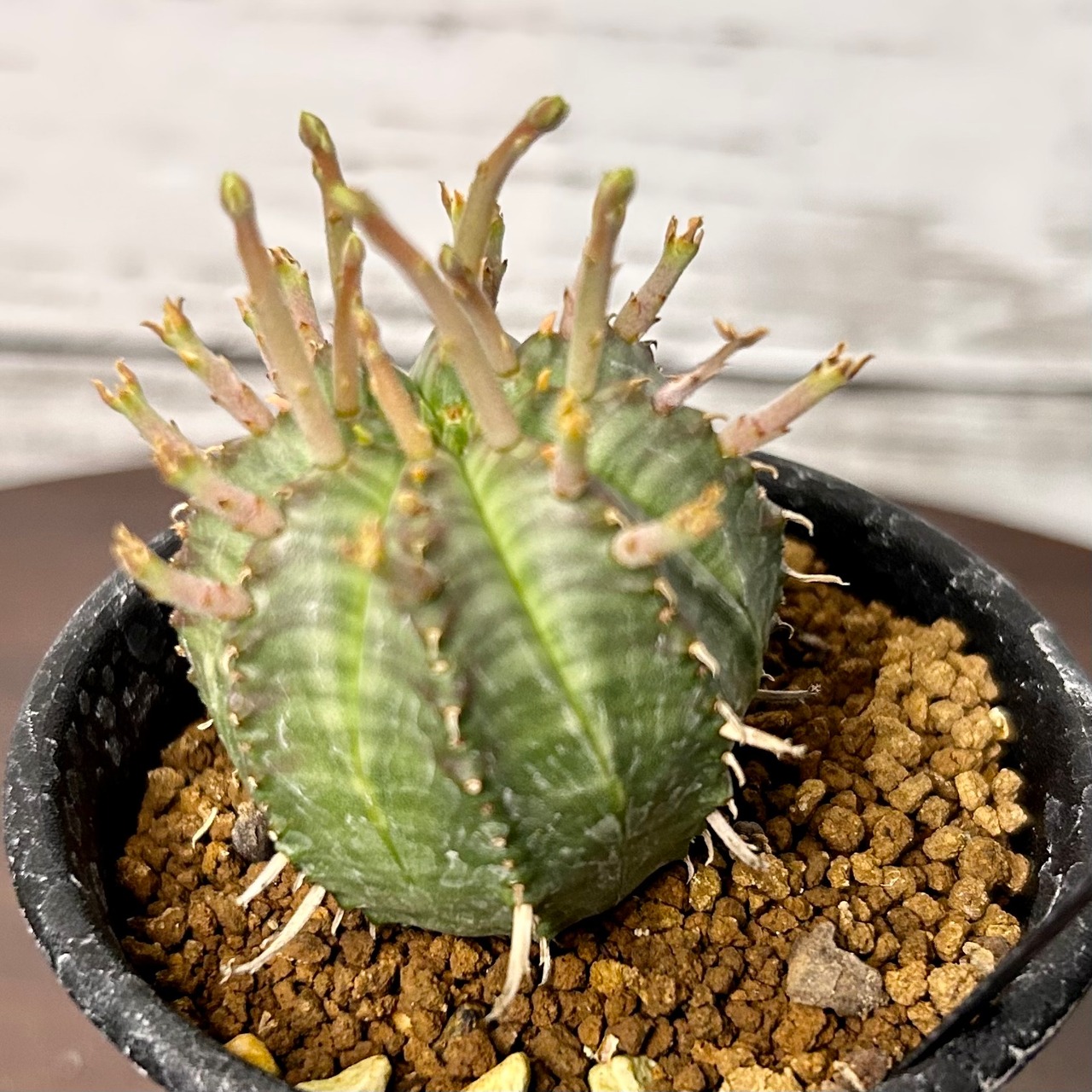 珍奇な姿が魅力的な球状種ユーフォルビア バリダ。
