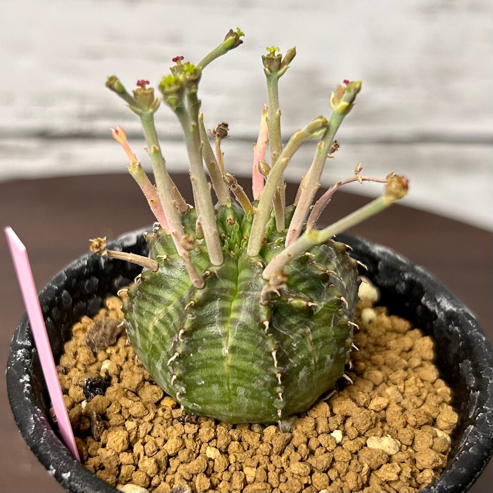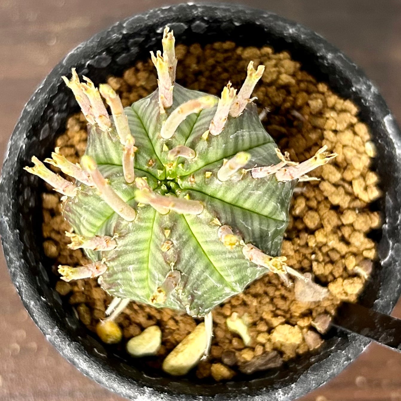 枯れ枝のようなものを球形の株から四方八方に伸ばす姿が強烈なユーフォルビアの人気種です!