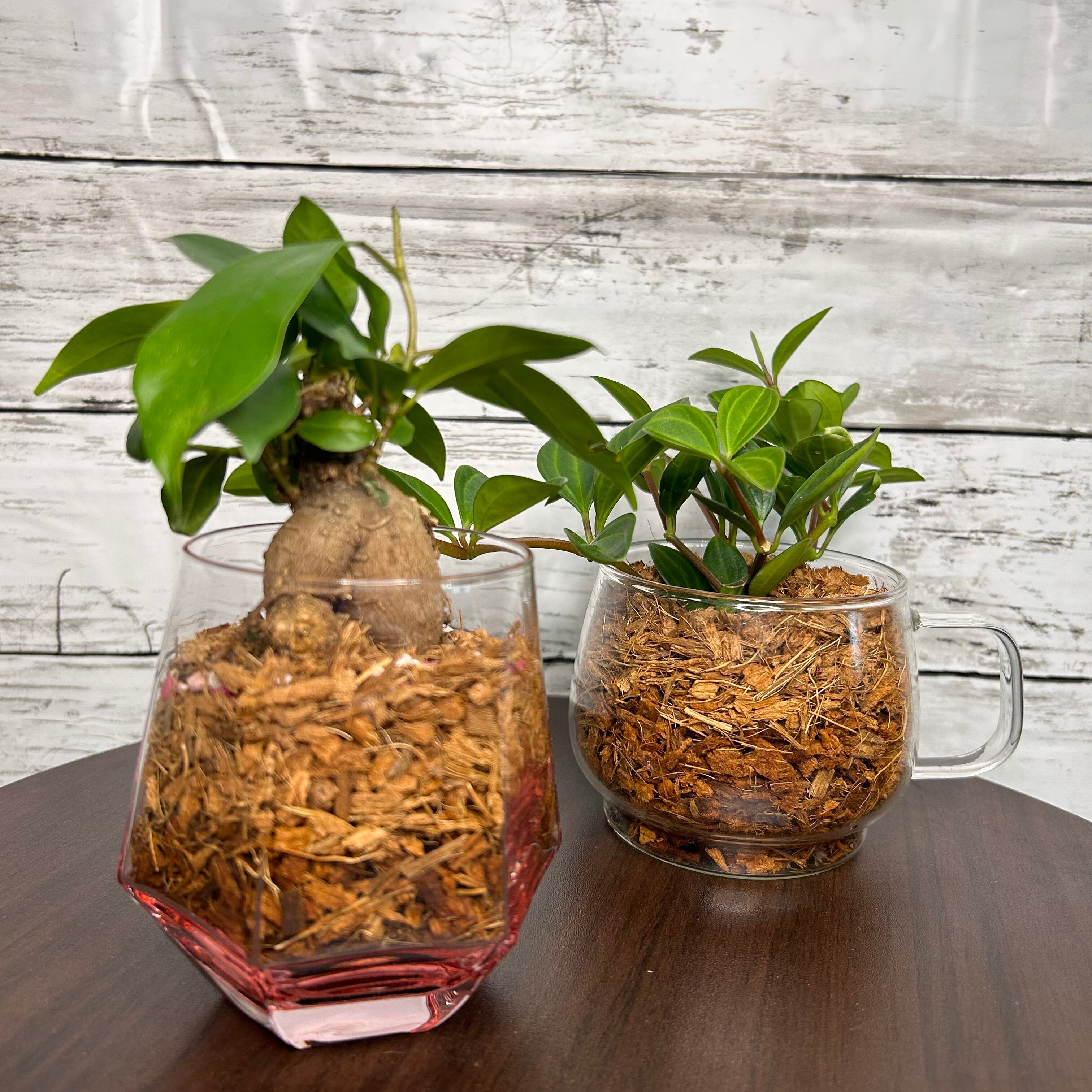 ガラス鉢ミニ観葉2つセット☆ ガジュマル ペペロミア 観葉植物 G16401