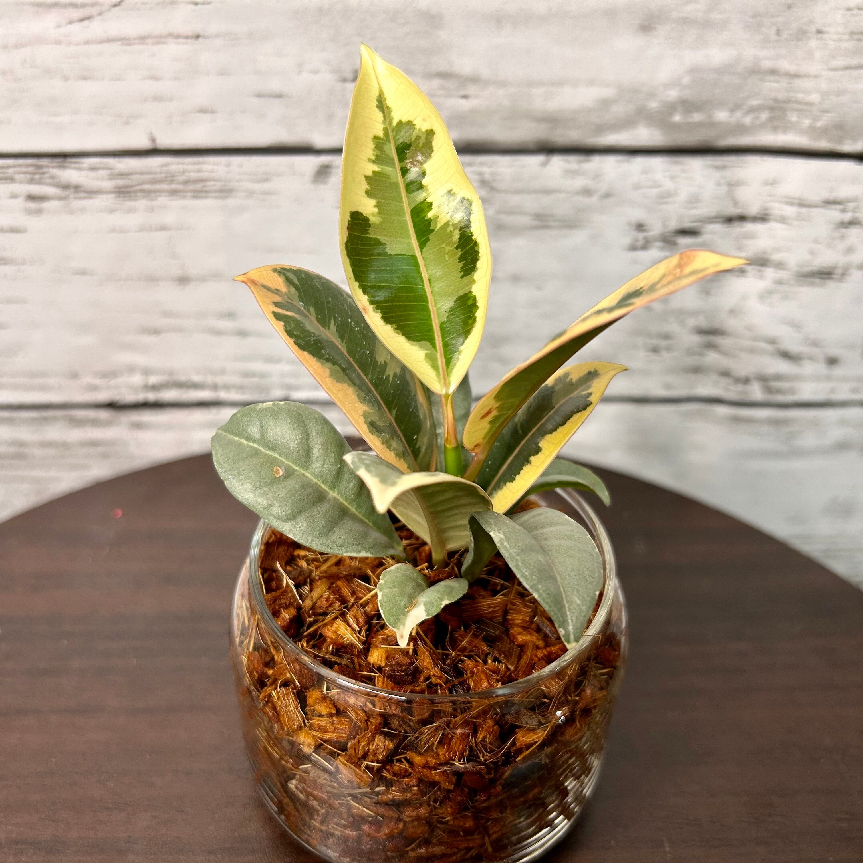 ガラス鉢ミニ観葉2つセット☆ フィカスティネケ・金のなる木 観葉植物G24503