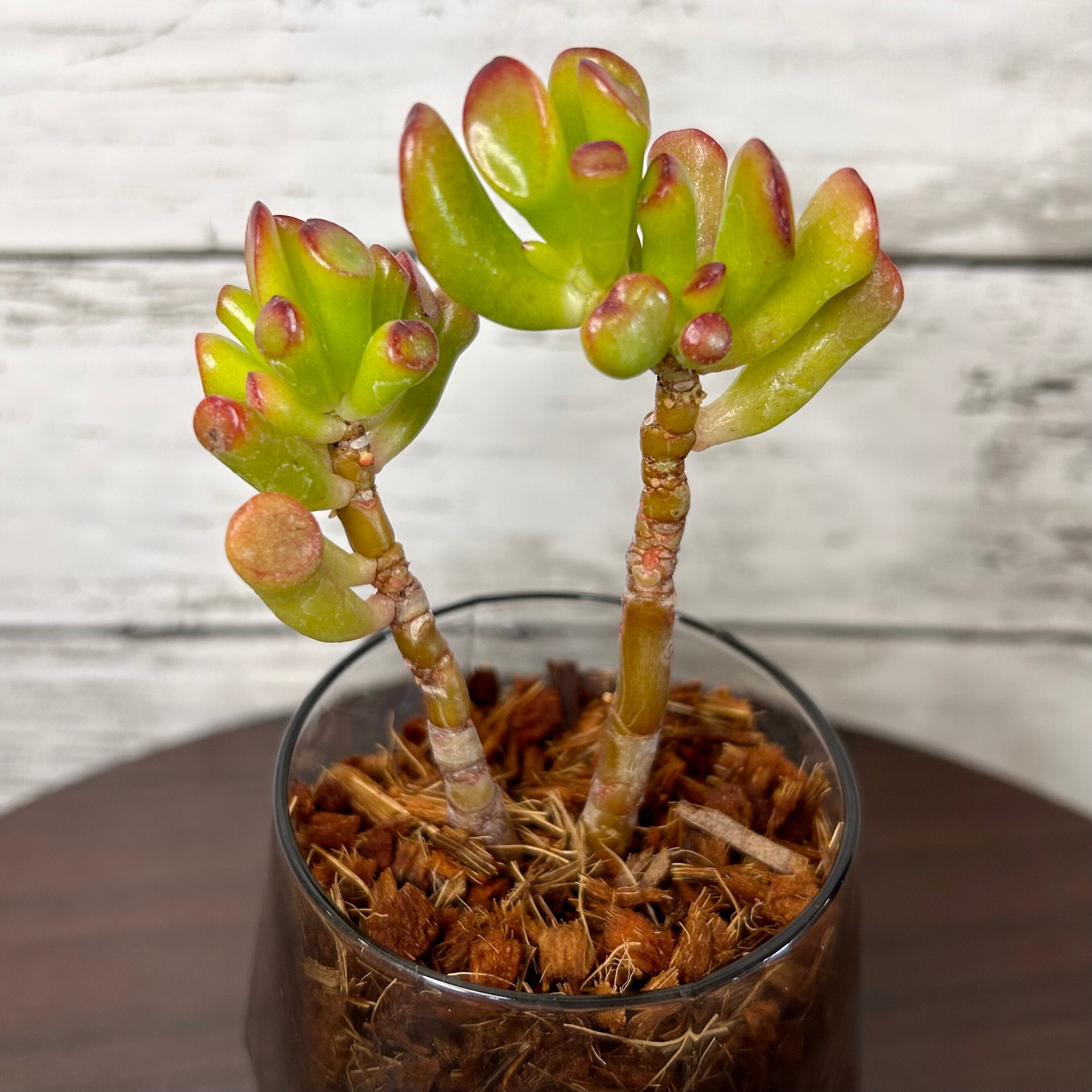 ガラス鉢ミニ観葉2つセット☆ パキラ・金のなる木(ゴーラム) G24506