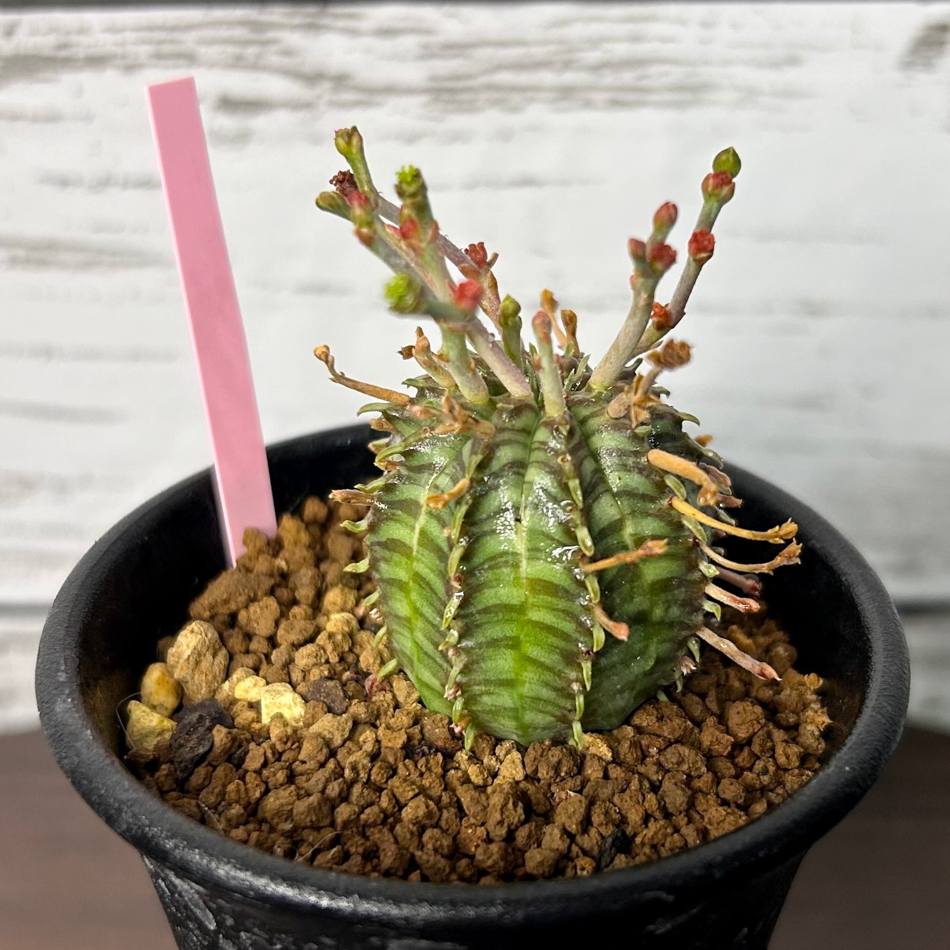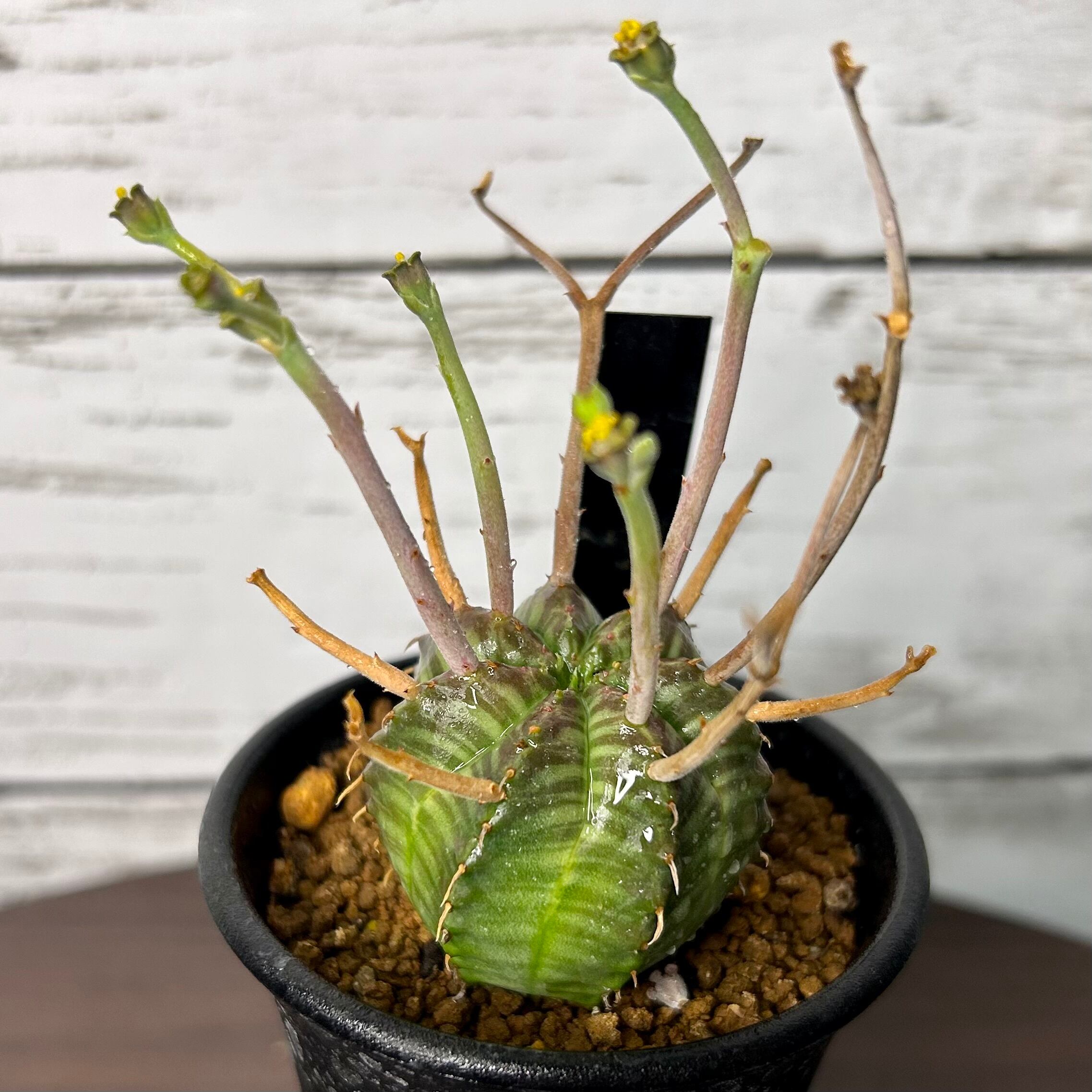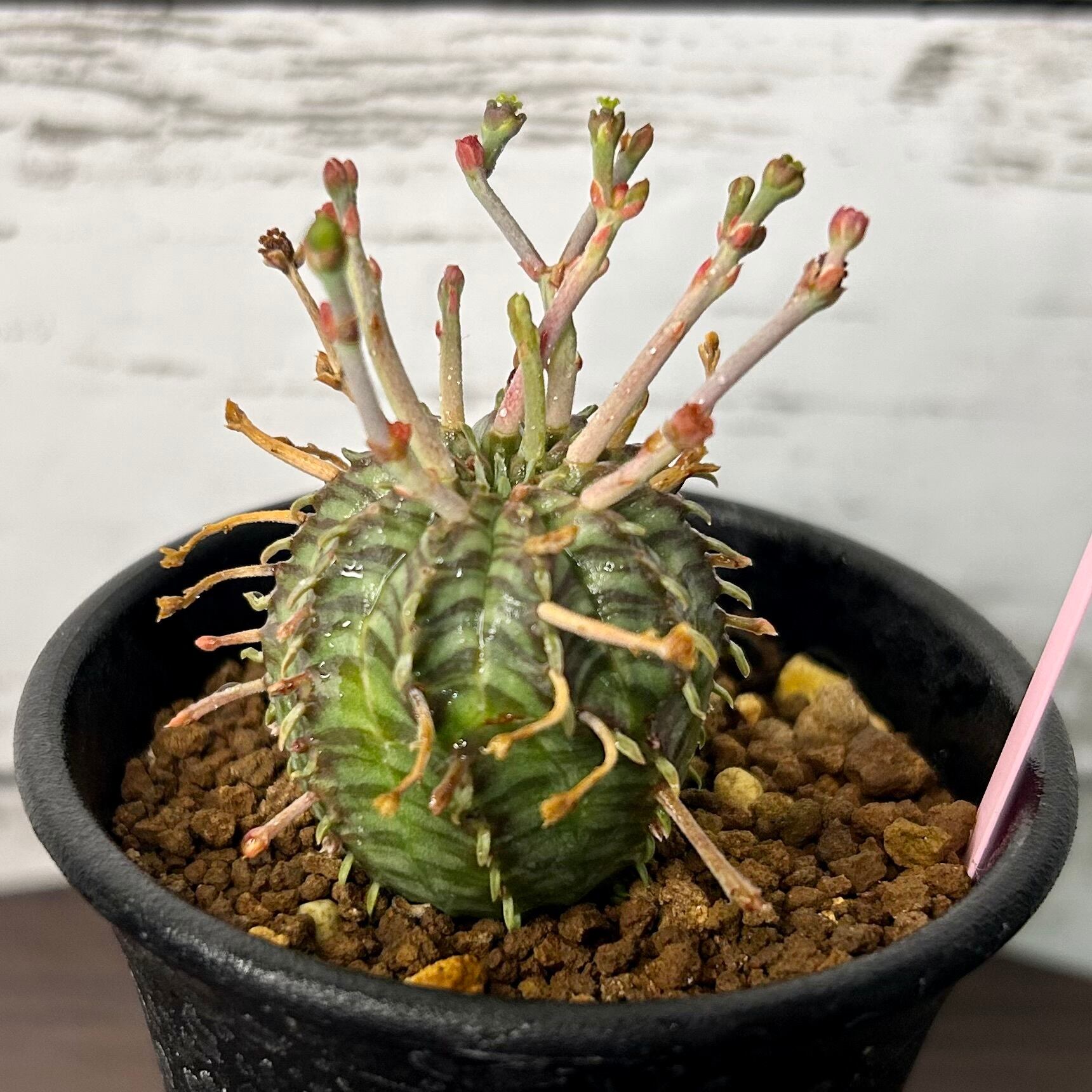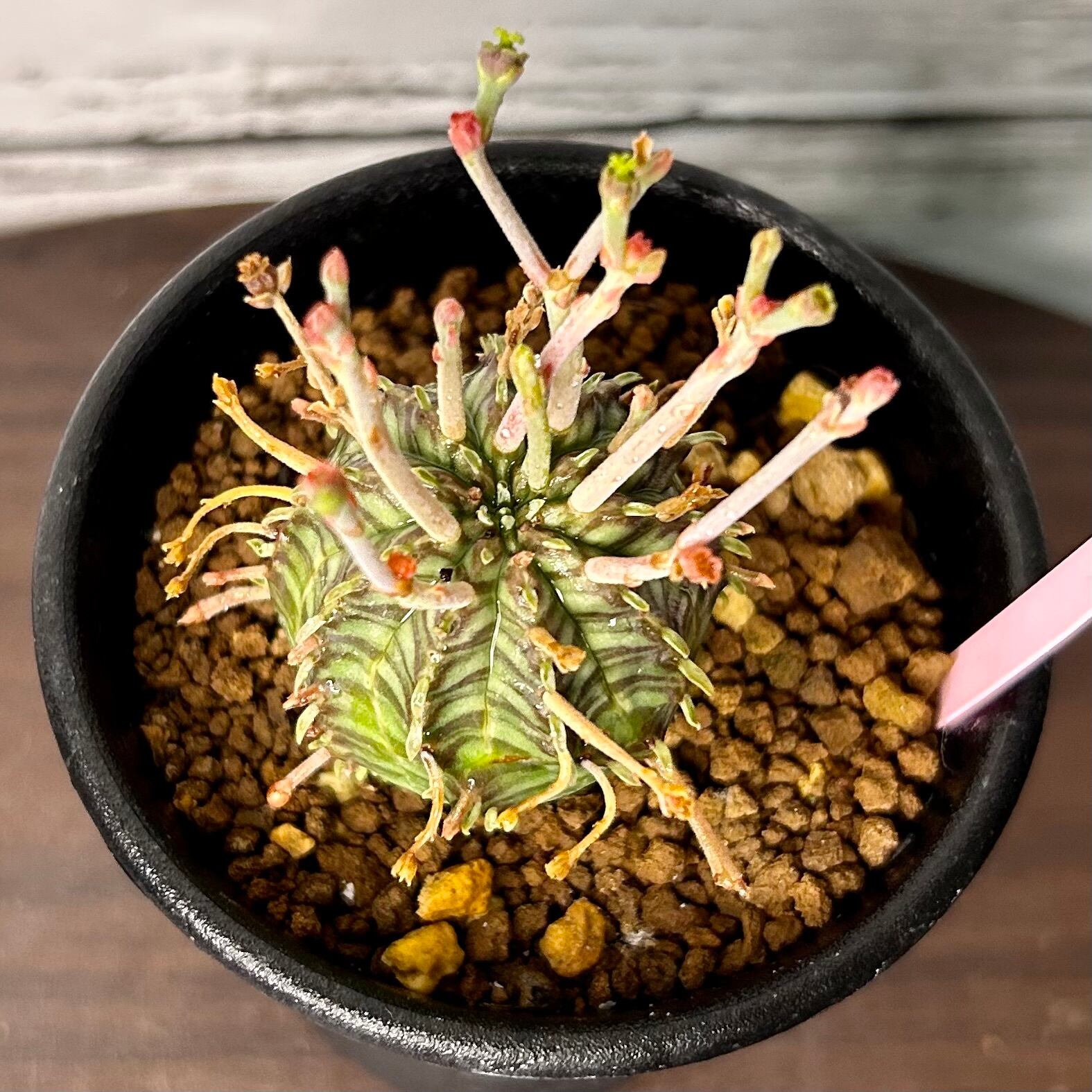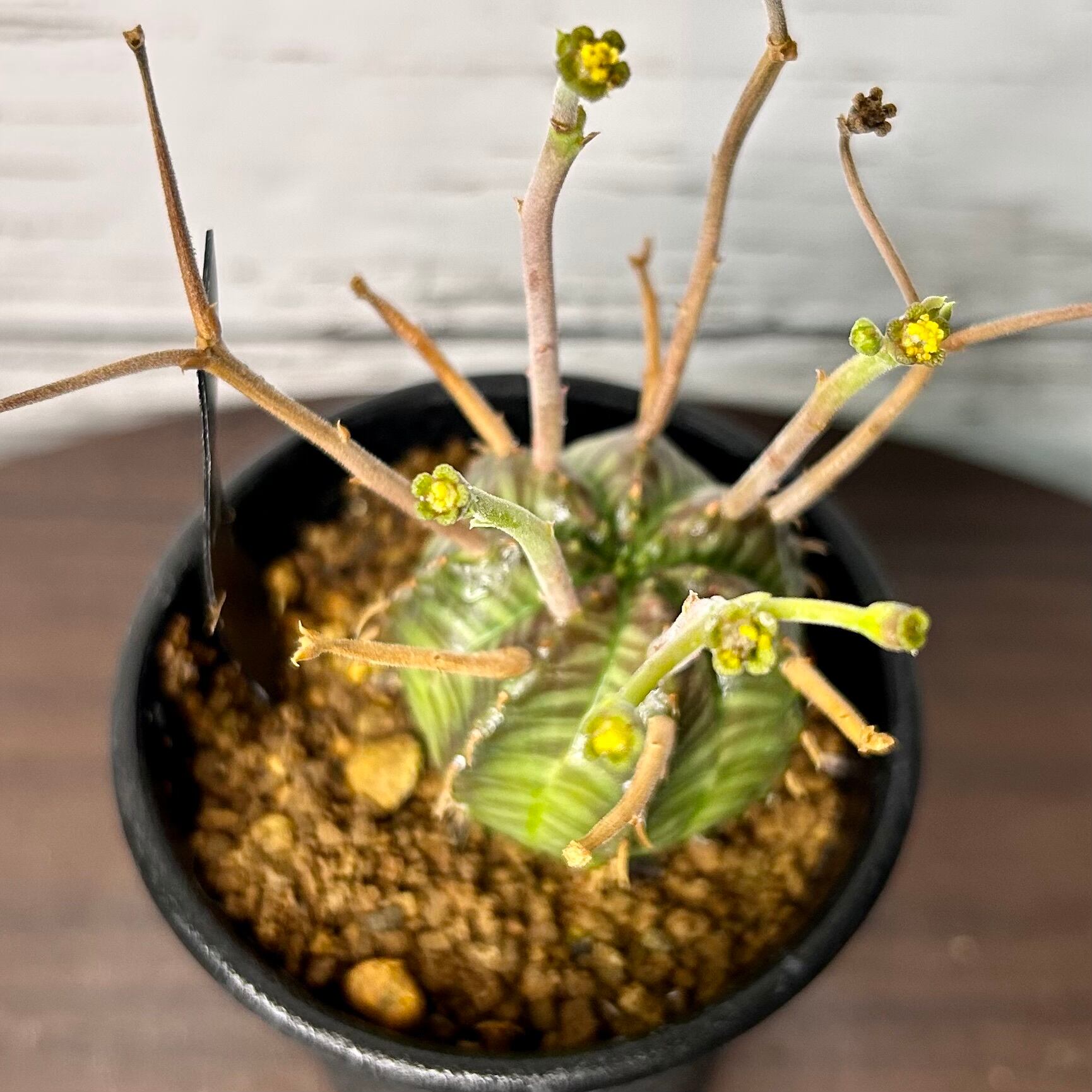 枯れ枝のようなものを球形の株から四方八方に伸ばす姿が強烈なユーフォルビアの人気種です!