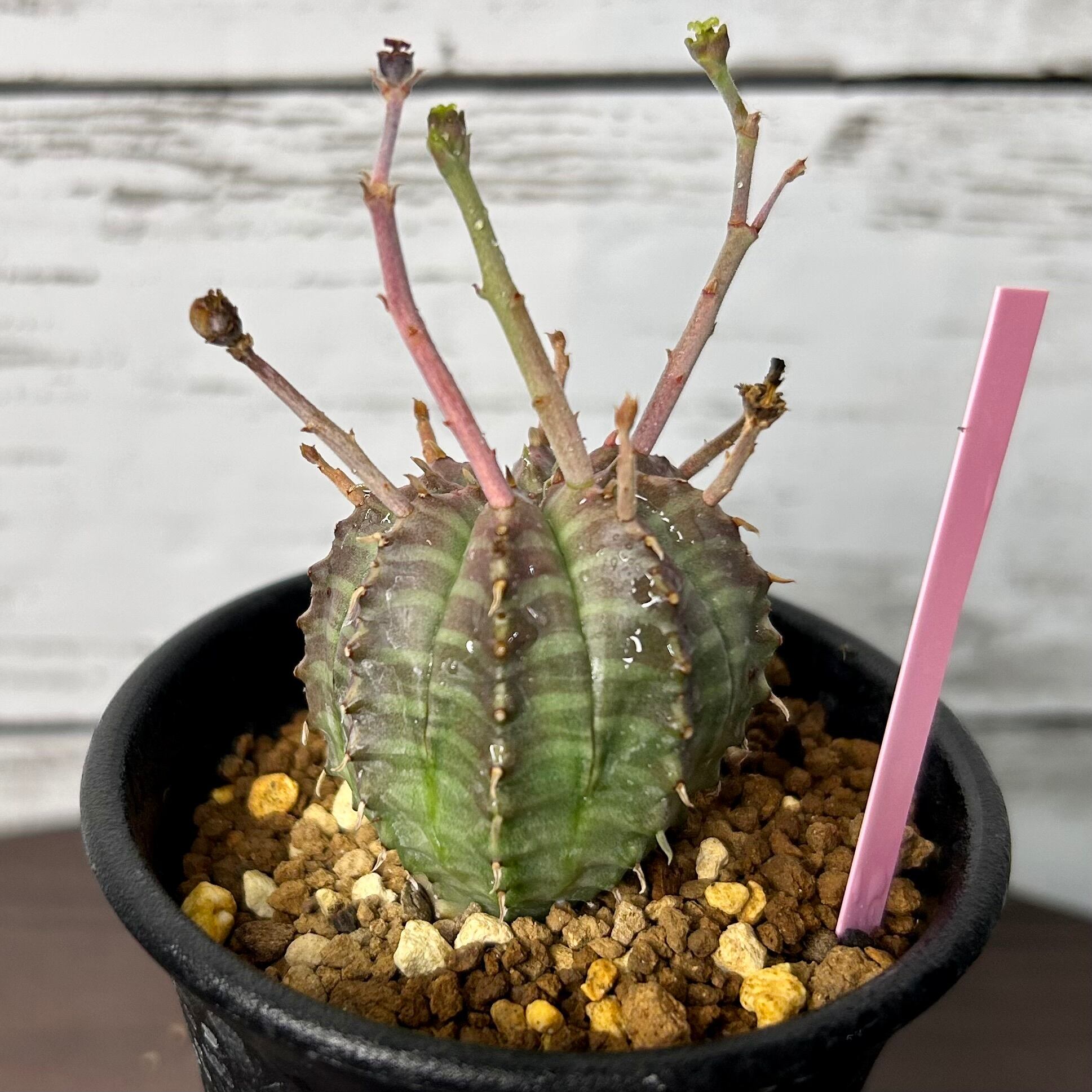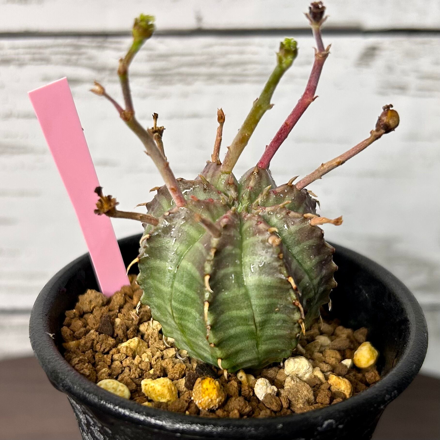 枯れ枝のようなものを球形の株から四方八方に伸ばす姿が強烈なユーフォルビアの人気種です!