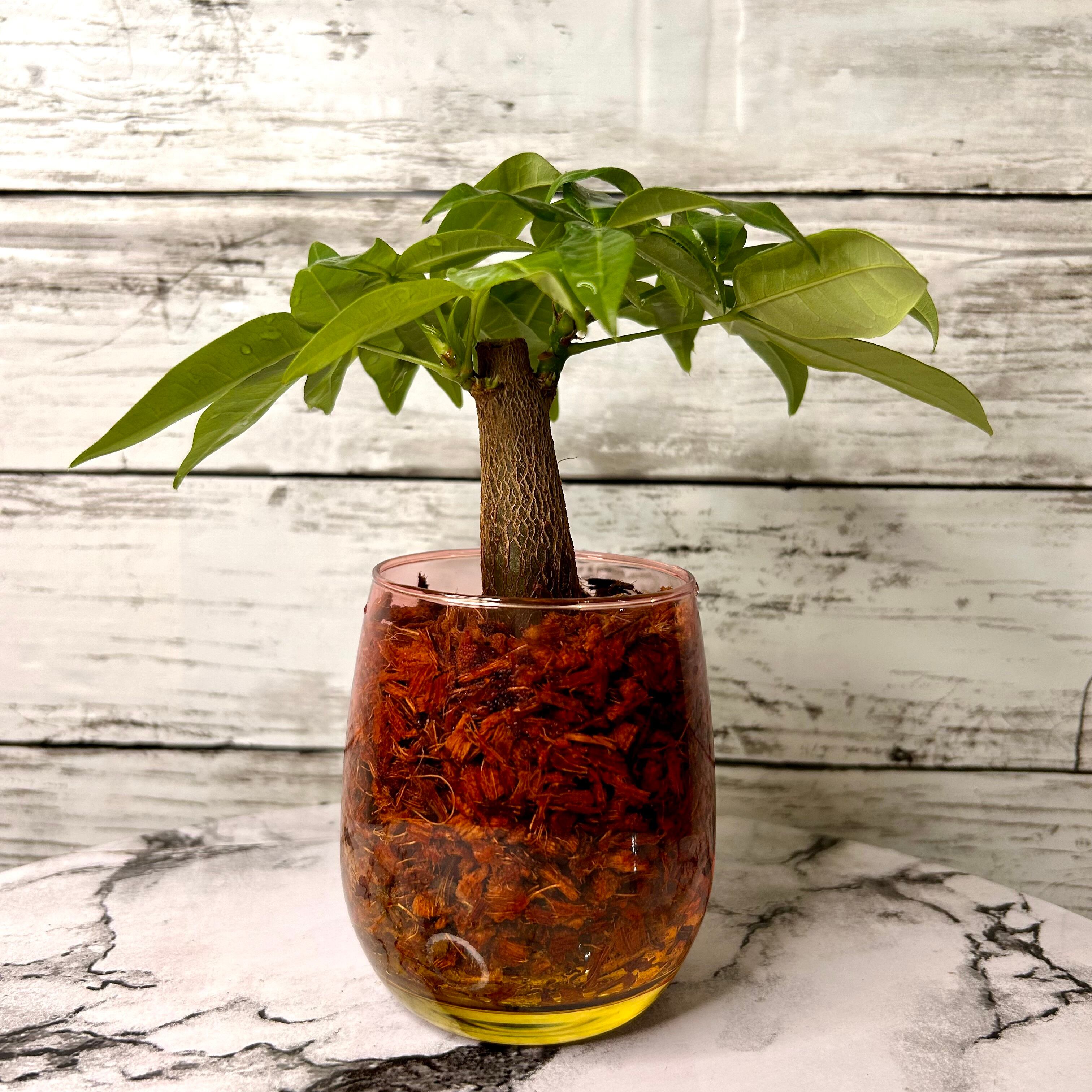 ガラス鉢にベラボン(ヤシの木チップ)で植えているので水やりが楽チン♫