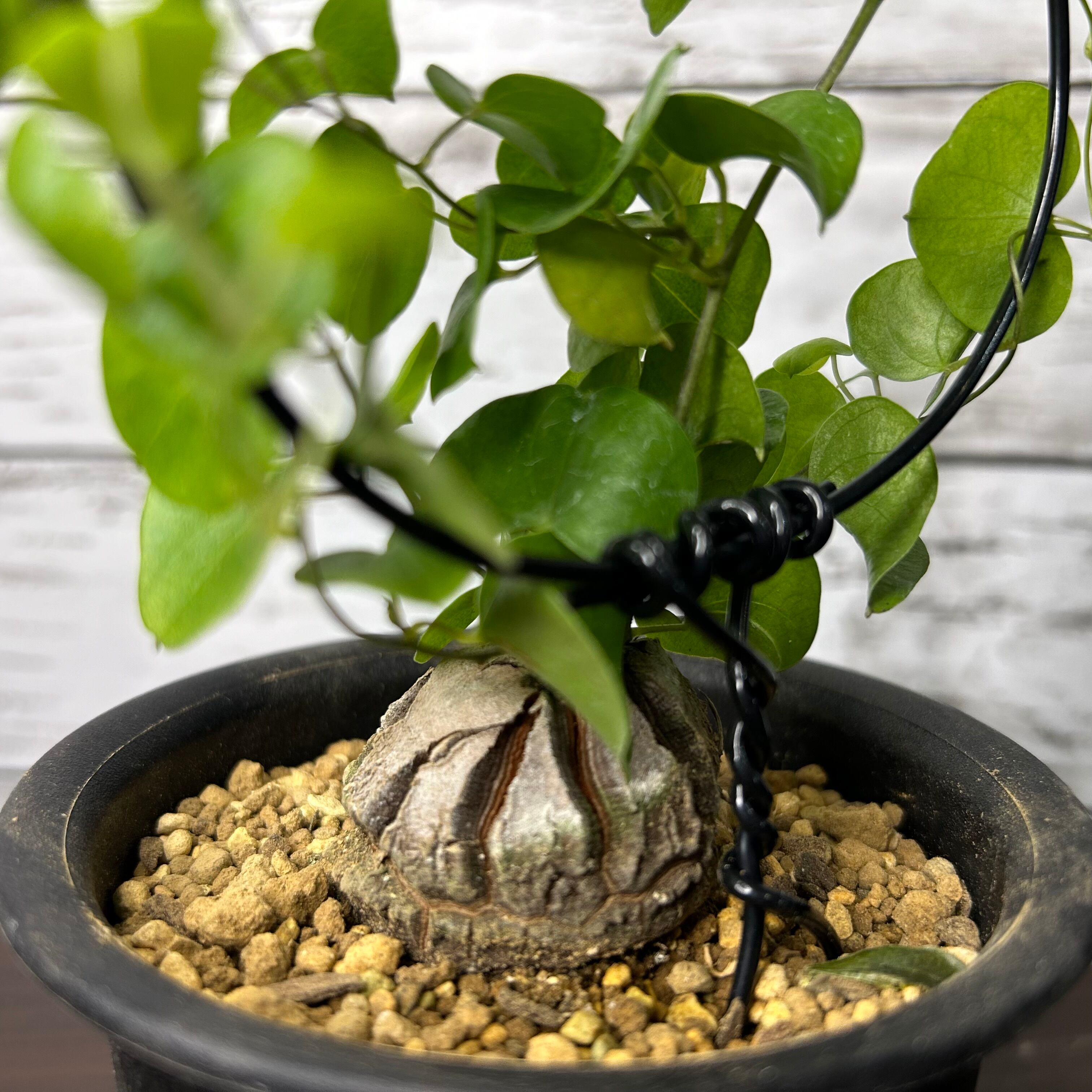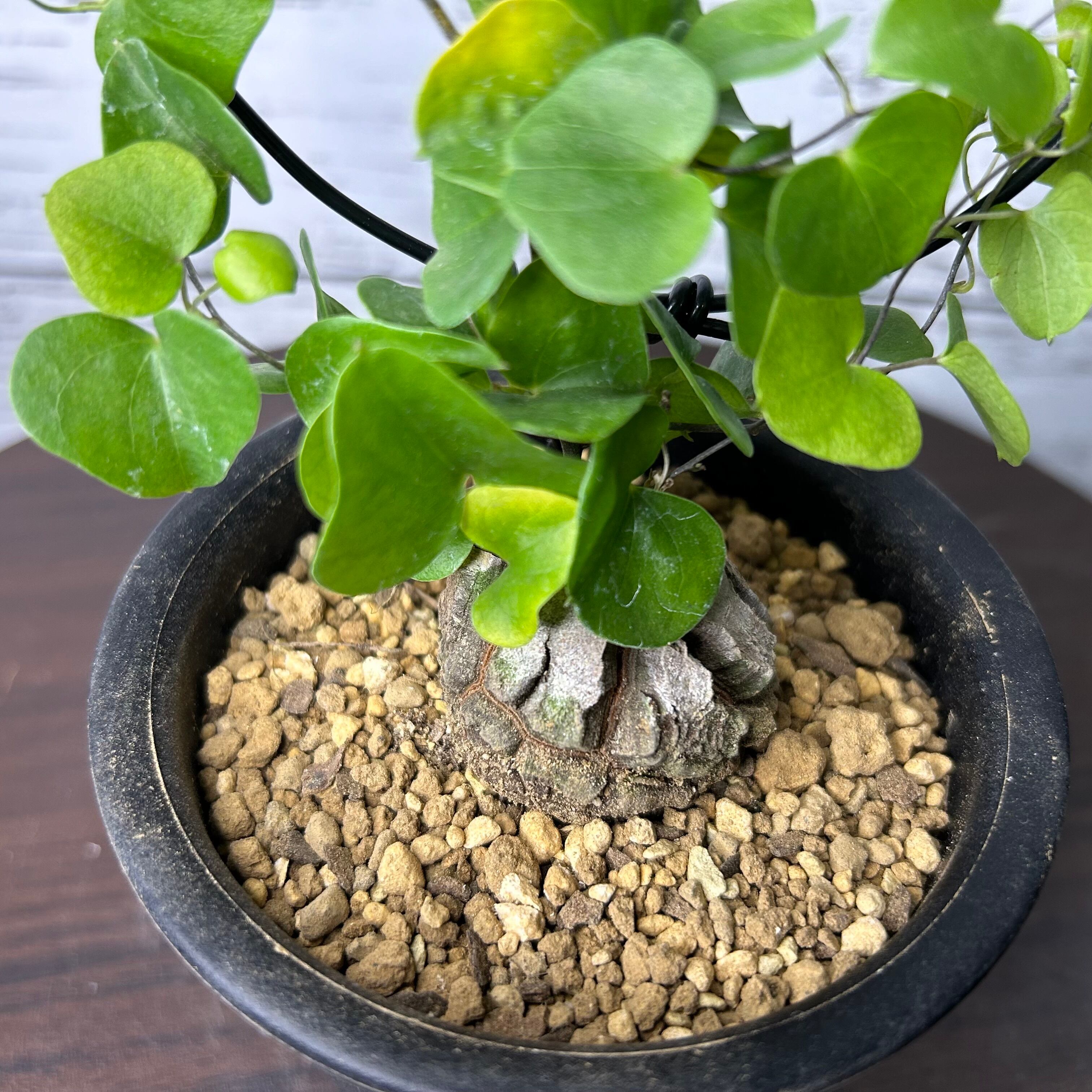 ただし、塊根部は直射日光に長時間当てると風化し表面が傷んでしまうので、葉にはしっかり日を当てる一方、塊根部は遮光気味にします。