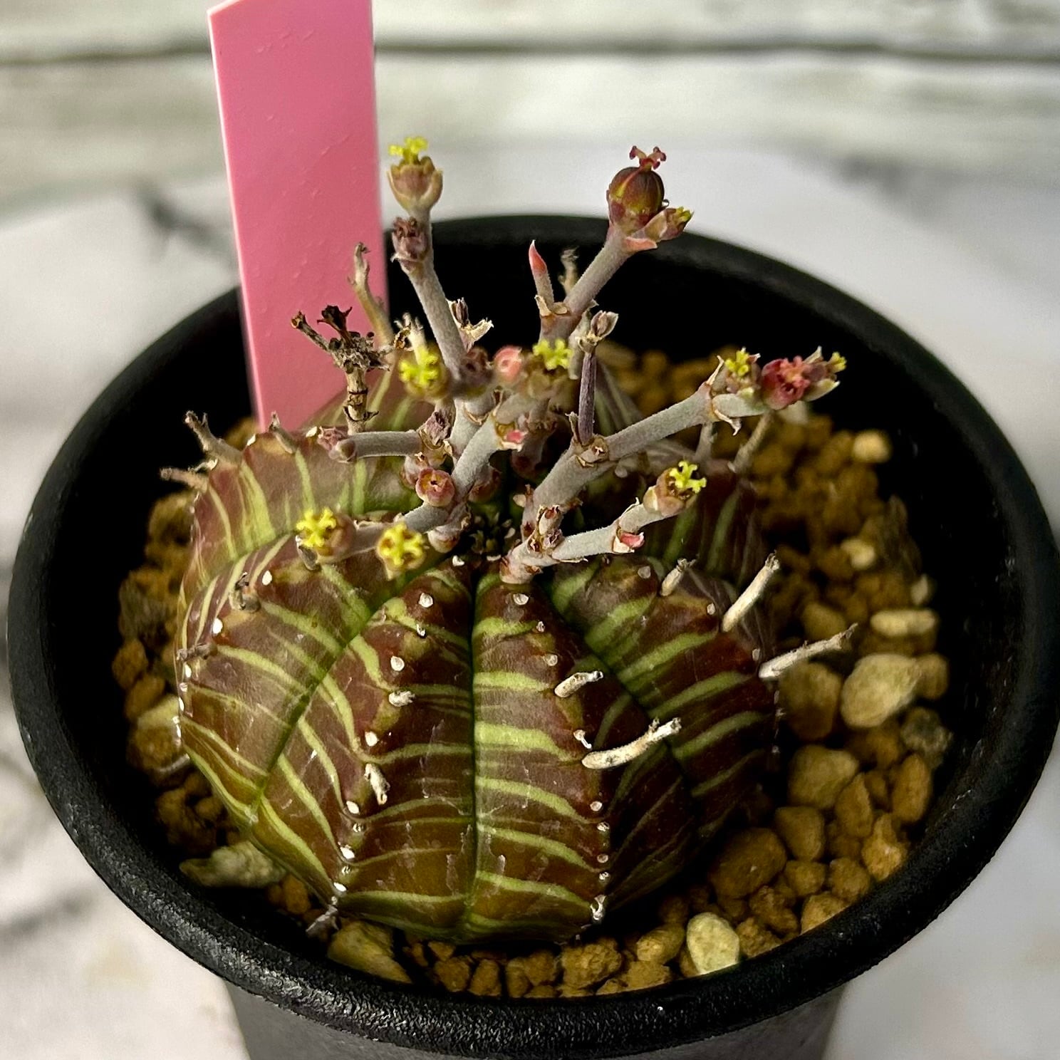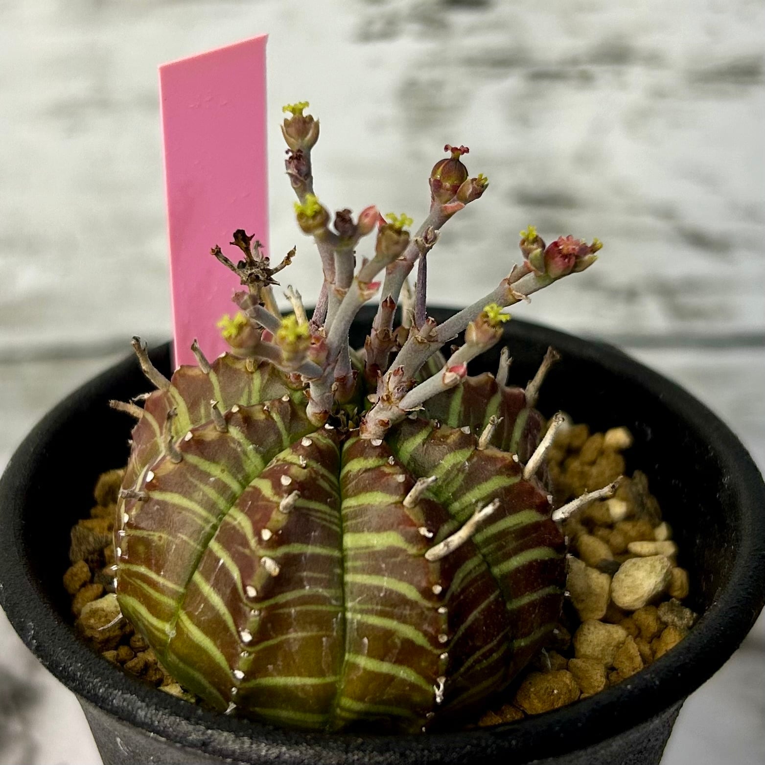 珍奇な姿が魅力的な球状種ユーフォルビア バリダ。