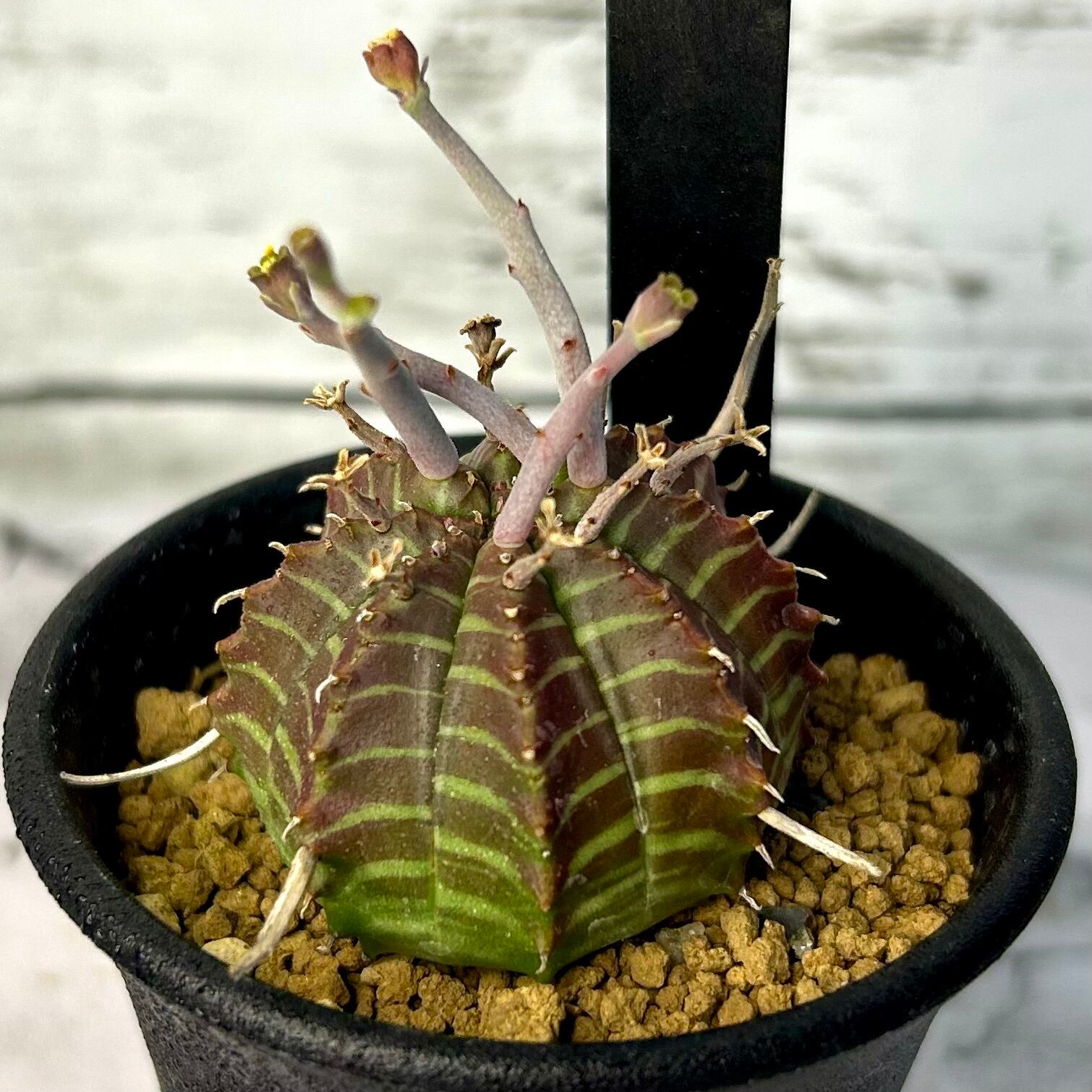 枯れ枝のようなものを球形の株から四方八方に伸ばす姿が強烈なユーフォルビアの人気種です!
