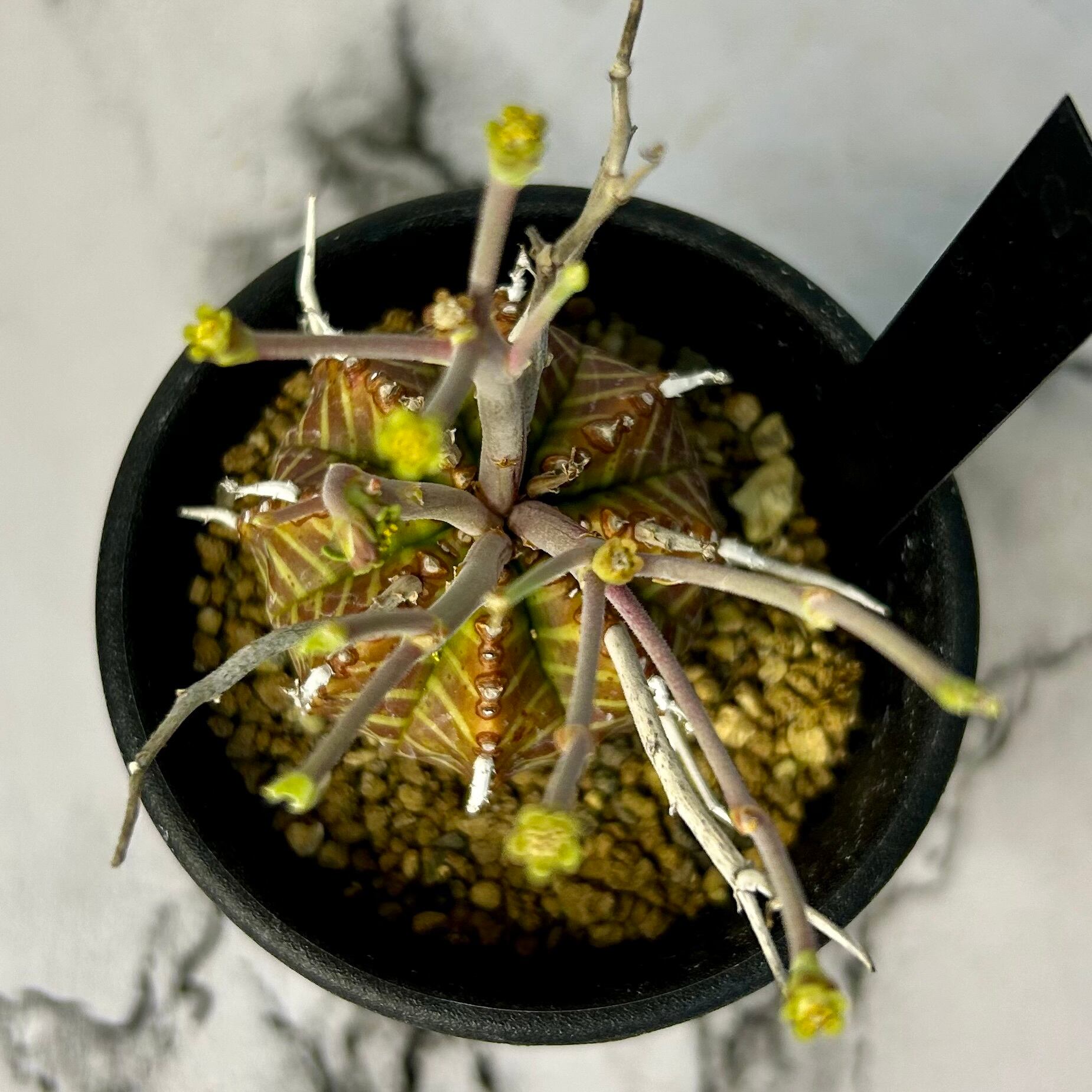 枯れ枝のようなものを球形の株から四方八方に伸ばす姿が強烈なユーフォルビアの人気種です!