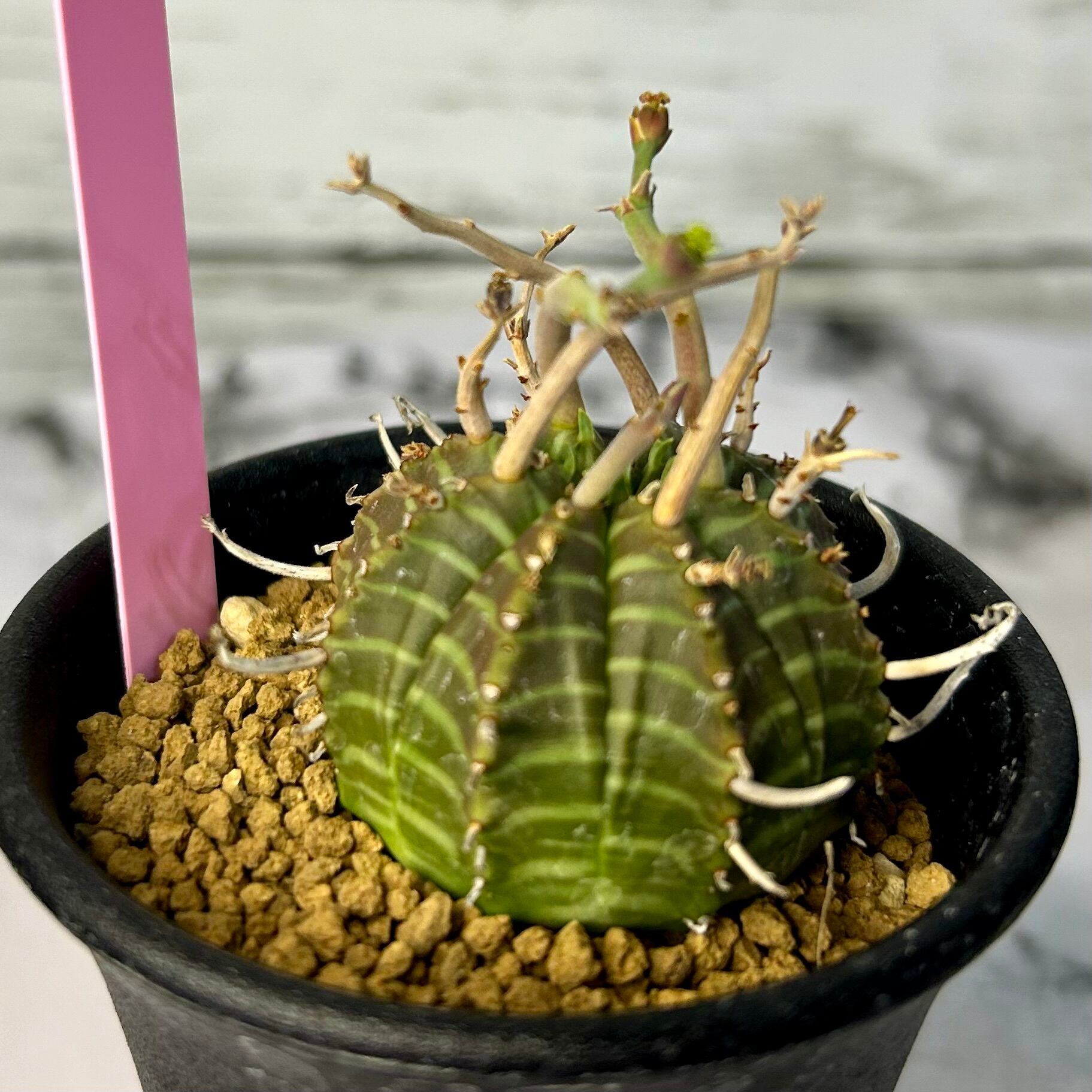 珍奇な姿が魅力的な球状種ユーフォルビア バリダ。
