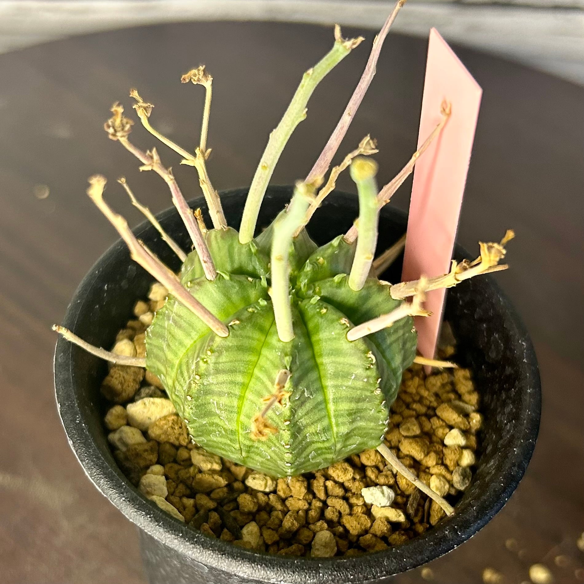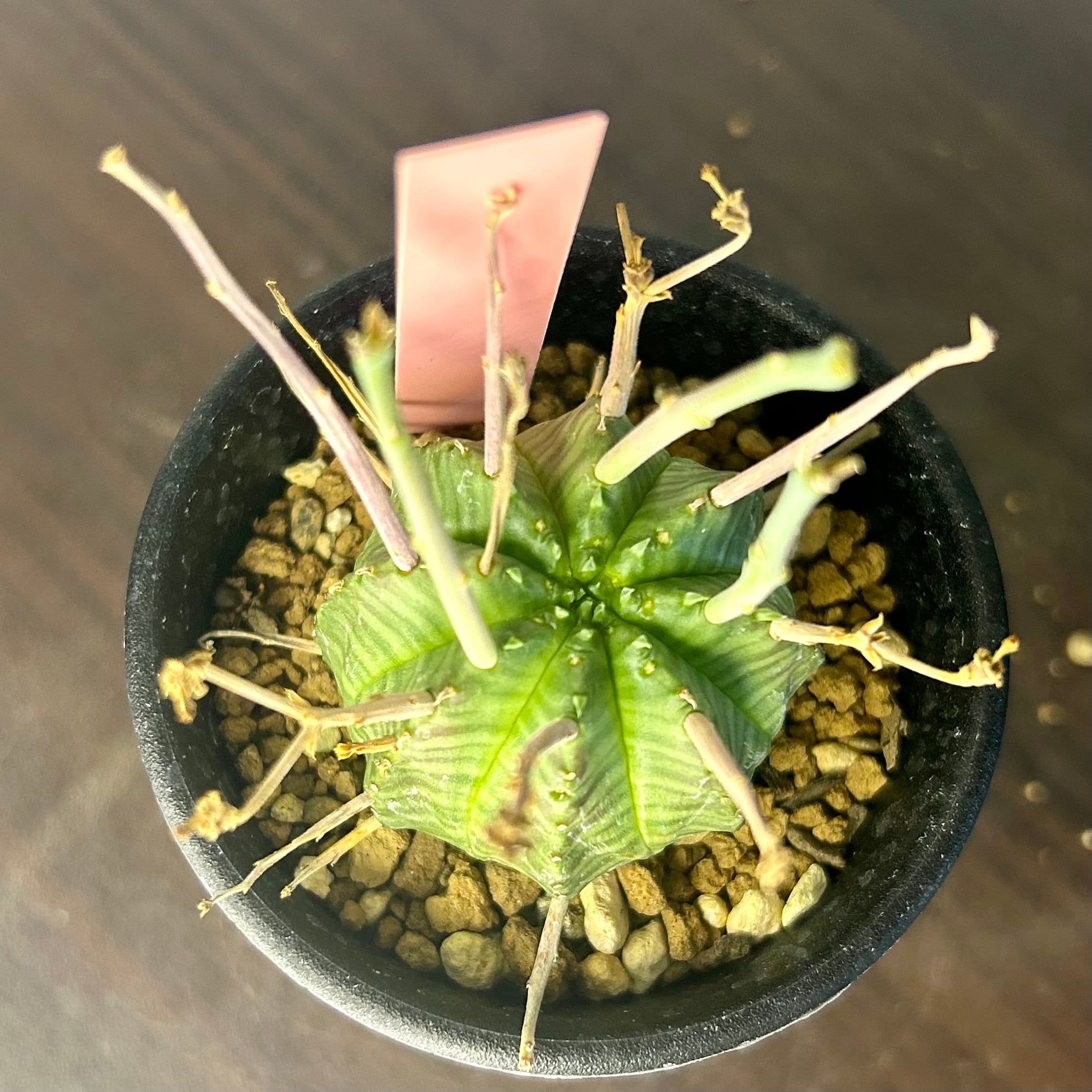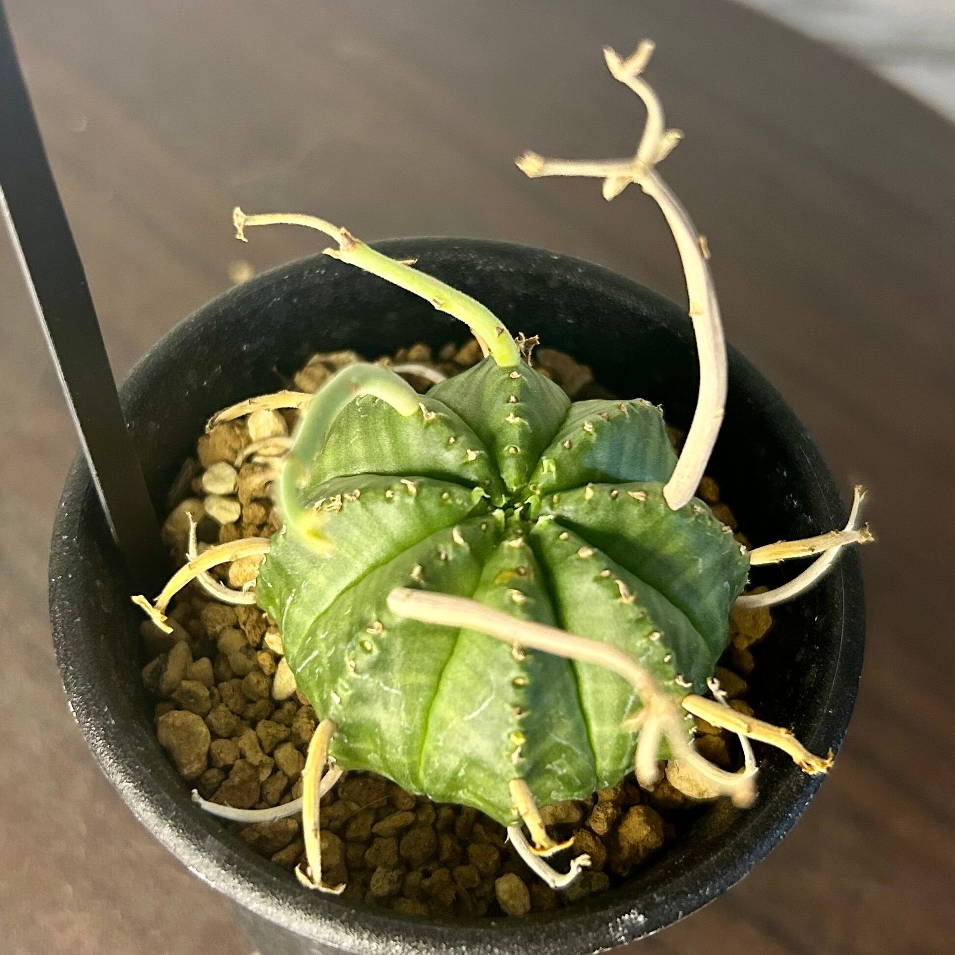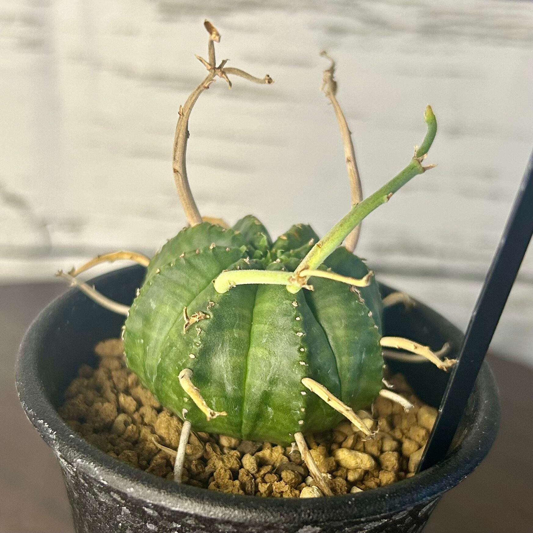 枯れ枝のようなものを球形の株から四方八方に伸ばす姿が強烈なユーフォルビアの人気種です!