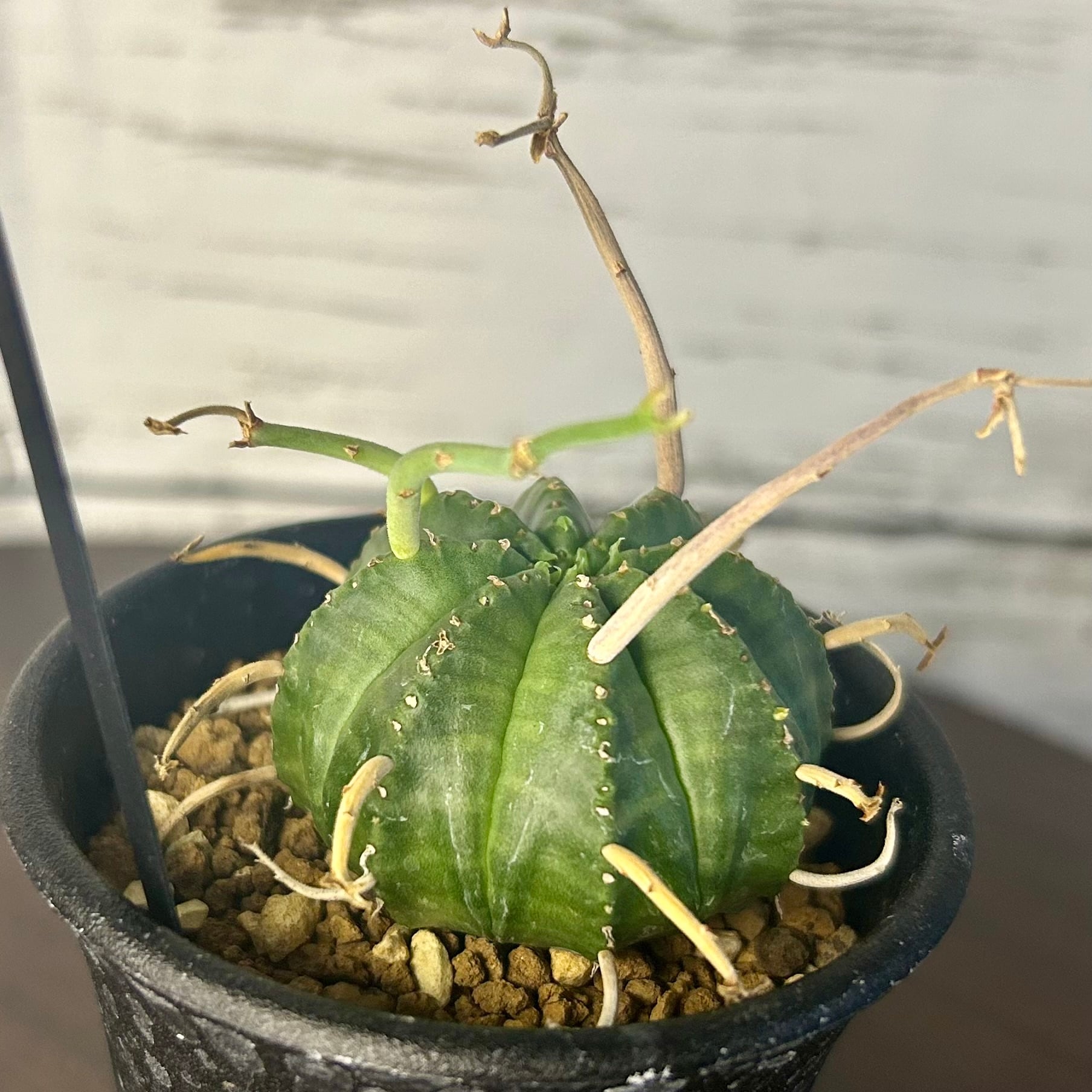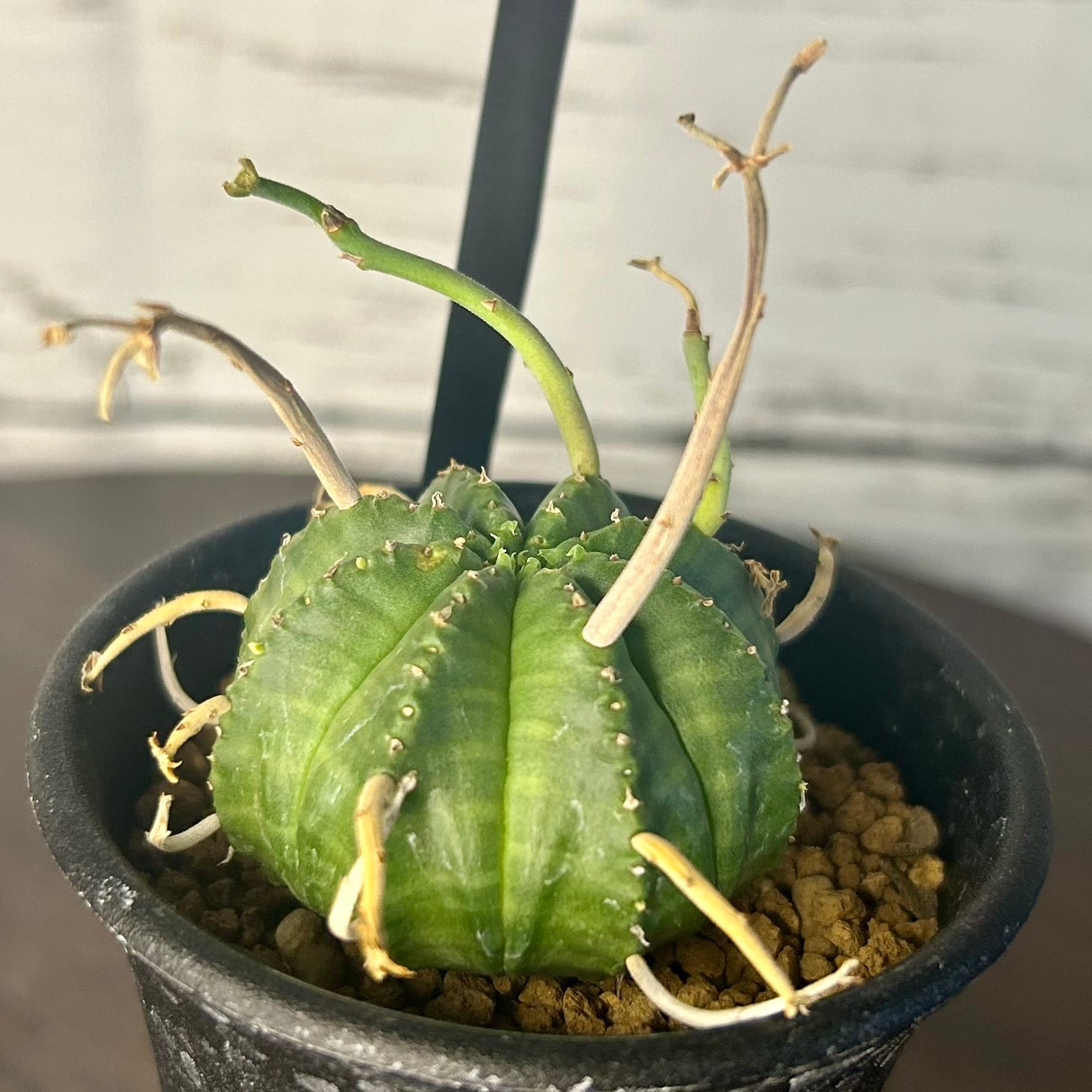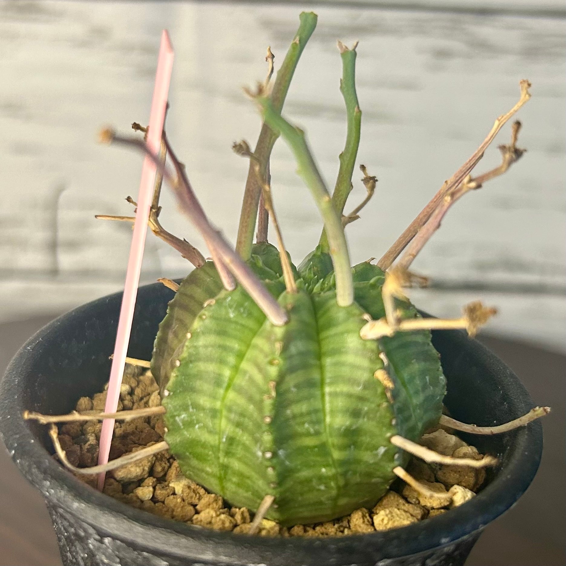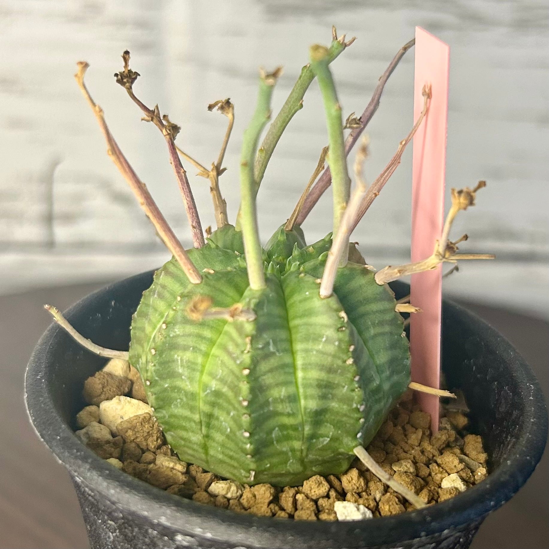 枯れ枝のようなものを球形の株から四方八方に伸ばす姿が強烈なユーフォルビアの人気種です!