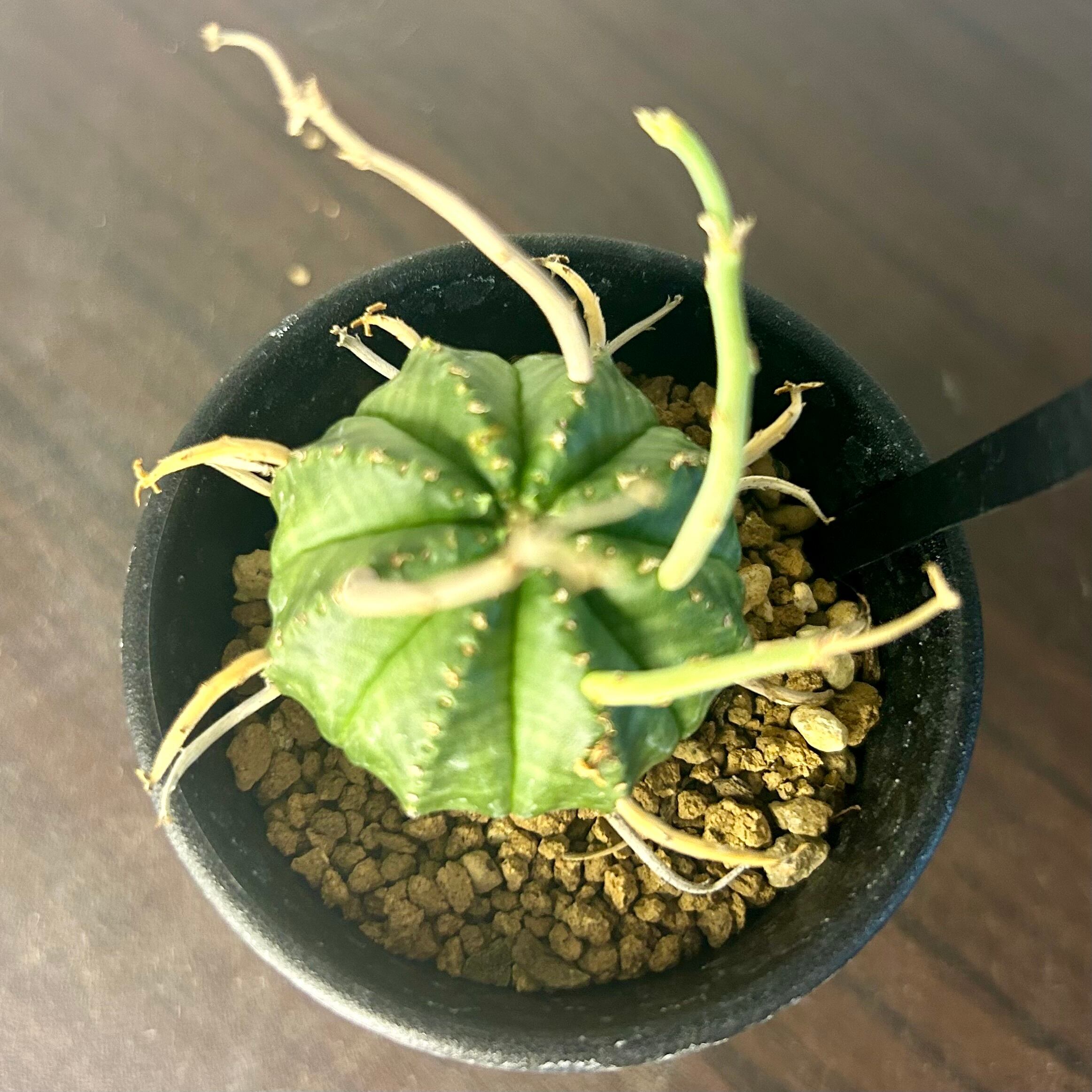 珍奇な姿が魅力的な球状種ユーフォルビア バリダ。