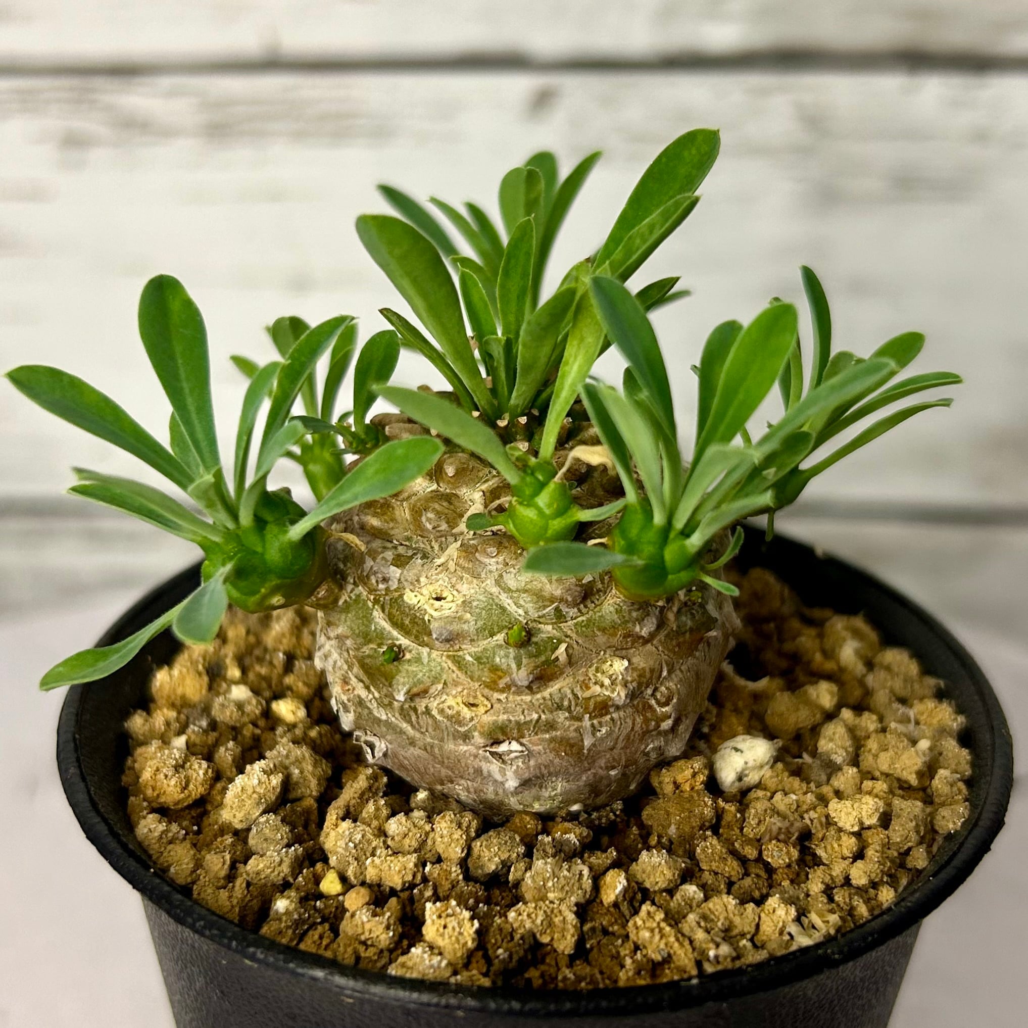 パイナップルの実のような株姿が人気の珍しい多肉植物です。