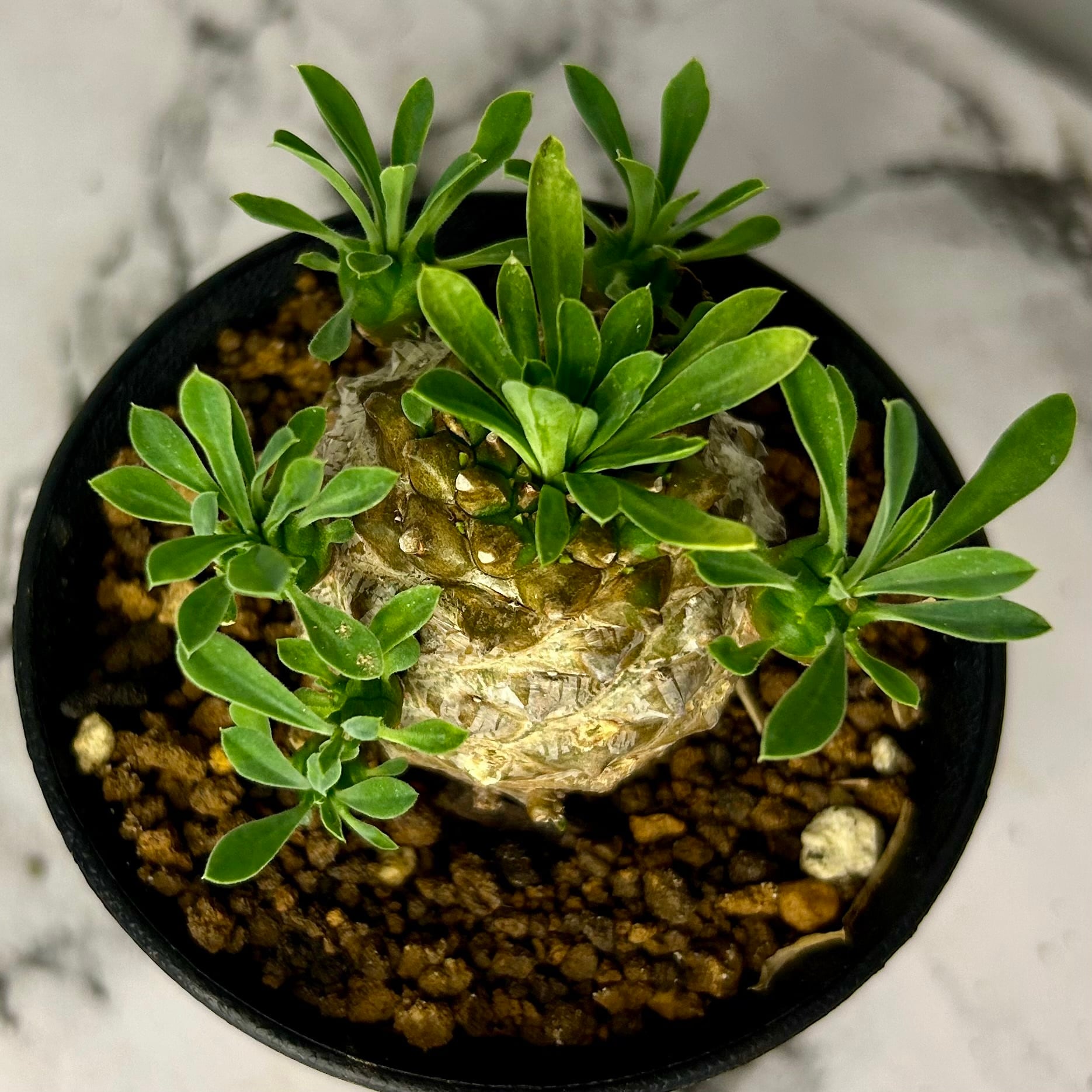 パイナップルの実のような株姿が人気の珍しい多肉植物です。